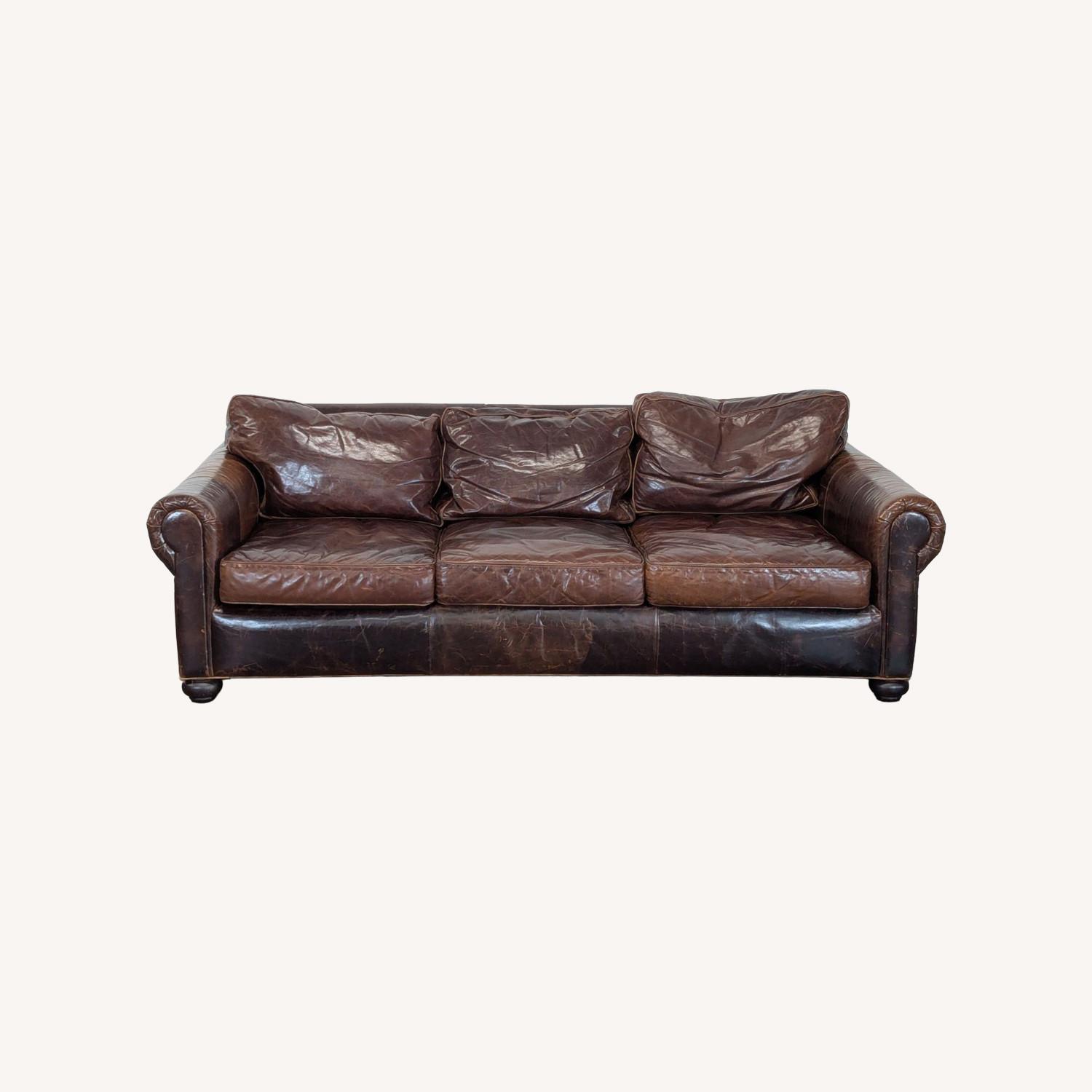 Restoration Hardware Lancaster 3-Seat Brown Leather Sofa