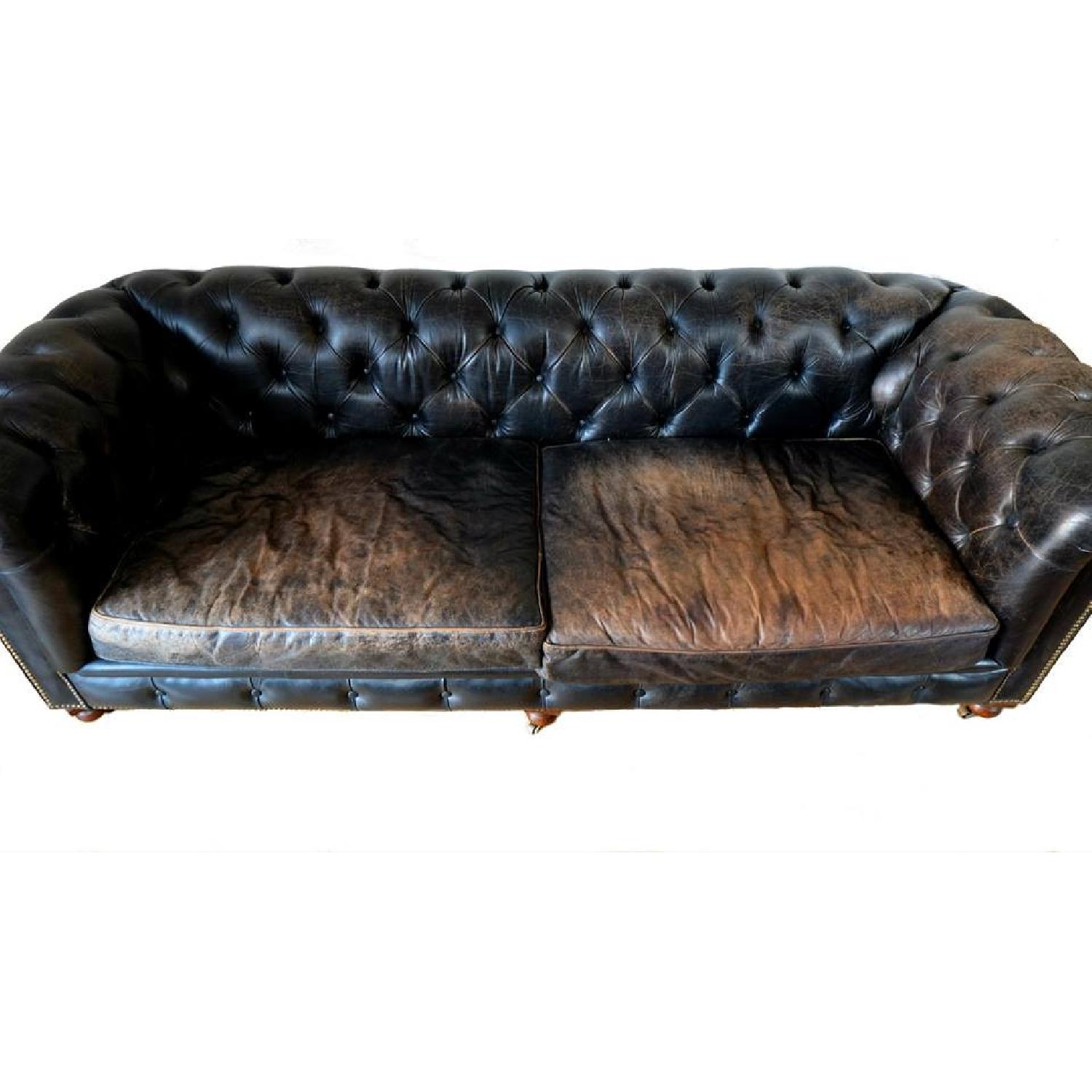 Seller's Notes:Absolutely breathtaking Restoration Hardware 8' Kensington Leather Sofa. Unfortunately wont be able to take it with me to my new place or I would be holding on to it forever, but NY real-estate is truly a bummer. It has served me well, and has some patina/discoloration that only adds to it's charm and comfort. I do have a dog, but I clean and vacuum the sofa regularly and will give it another clean before sending it off to it's new home. So sad to see it go, it's really a dream couch, and something I've always wanted in my home, but happy that it will continue to provide comfort to it's new owner for years to come.