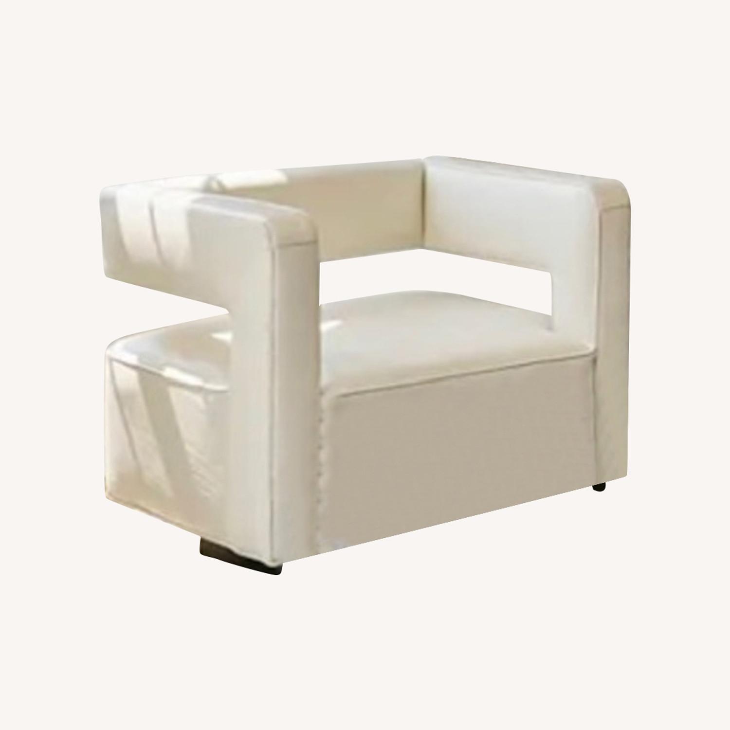 Seller's Notes:With 3 years of light seasonal use, this chair is in very good condition, swivels perfectly and offers a lot of cache to uplevel your bedroom, office or living area room with just one statement piece. It is covered in ivory leather (italian venetto nubuck), a special order that originally cost $4595.