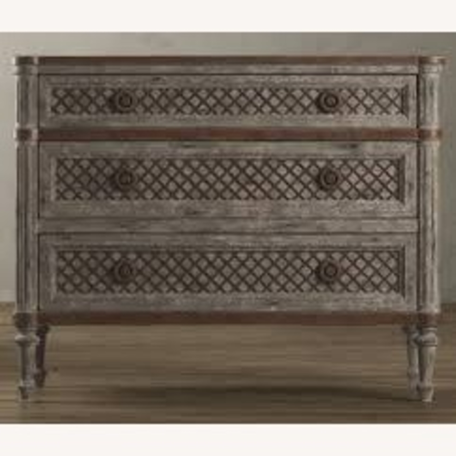• Metal strapping binds the top and bottom of each dresser