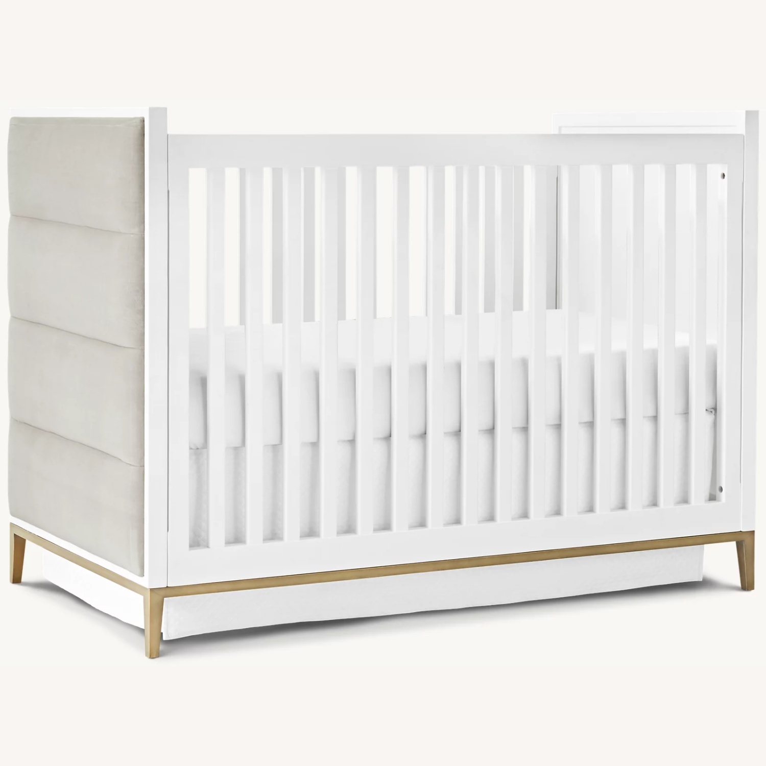 Restoration Hardware Loew Upholstered Velvet Crib - Waxed White