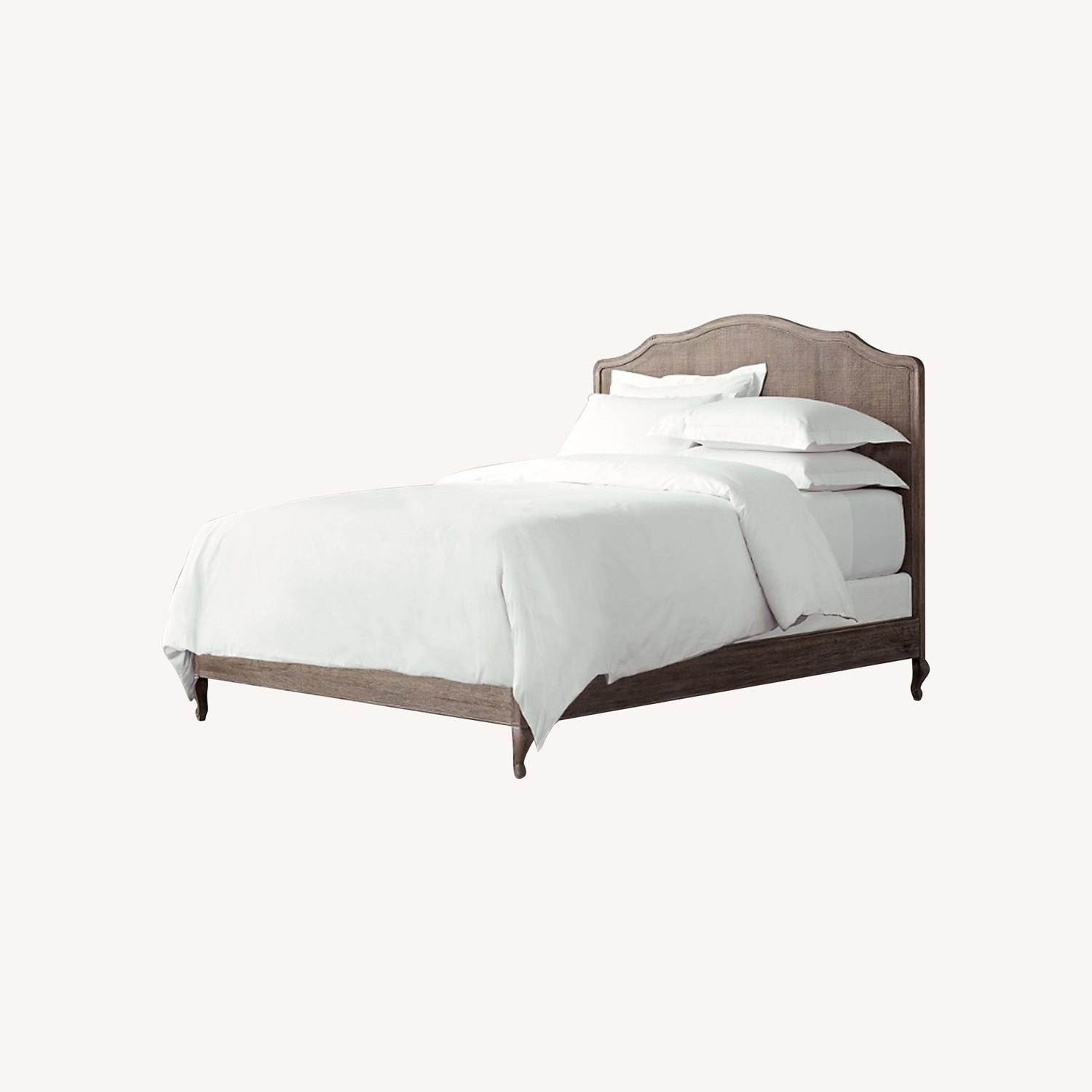 Seller's Notes:The hallmarks of French neoclassical design – understated elegance and fine, exposed wood – are showcased in our sumptuous bed. Handcrafted of solid oak, it features classical hand-carved details and tailored caning with a distressed finish. Exposed solid oak frames are carved with designs originating in ancient Greece and Rome Headboard is tailored with caning in a distressed finish Includes solid wood support system; requires a mattress and box spring RH Burnt Oak Finish, looks similar to cerused oak Rattan caning basketweave