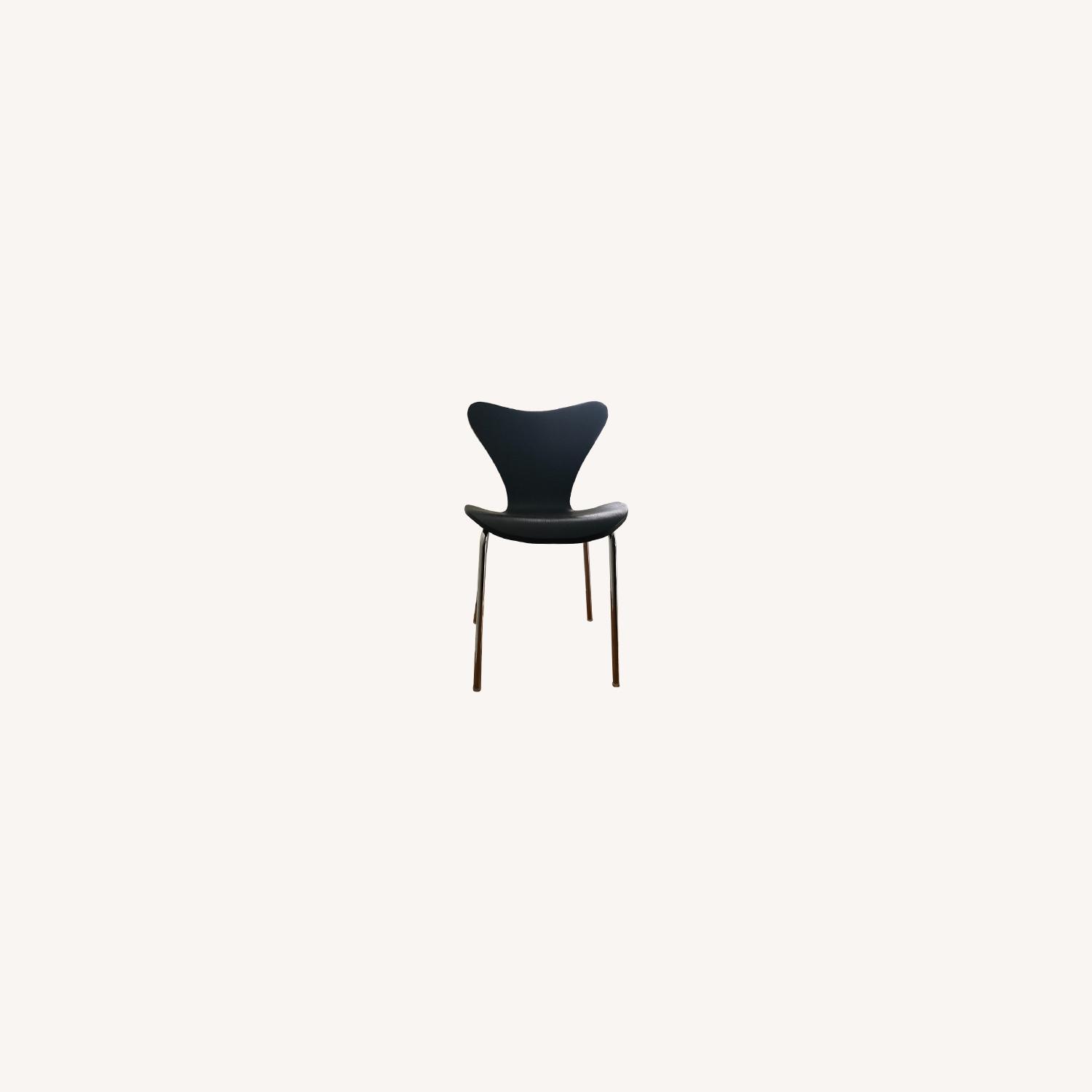 Seller's Notes:A set of MAGNUS chairs (four), crafted of bent plywood with a weathered, stained or painted finish, the chair offers a rich interpretation of the Danish Modern classic. Shaped for comfortable support and compact stacking, set on tubular steel legs, feet have glides to protect the floor.