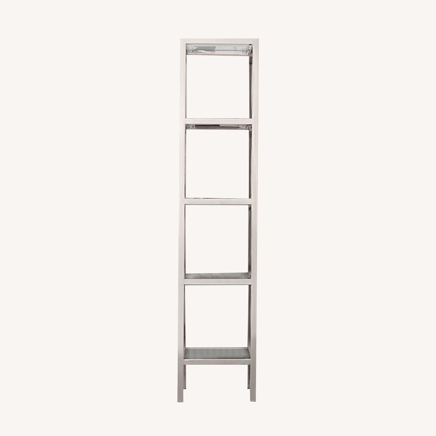 Seller's Notes:Two small shelving units from restoration hardware, each shelf is missing a piece of glass. This can be replaced through restoration hardware.