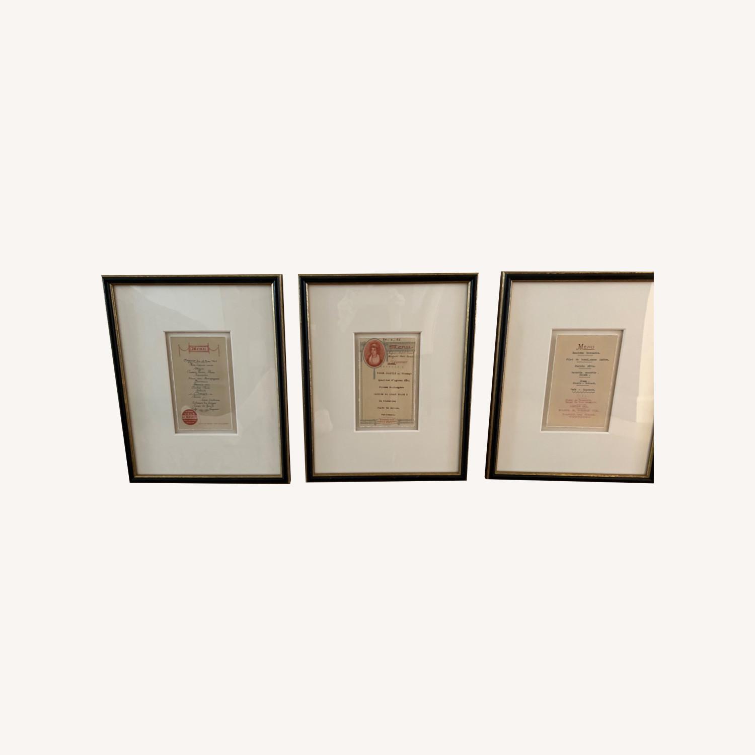 Seller's Notes:Three reproductions of Reprinted on acid-free paper, these hand-written menus dating from 1896 to 1948, capture the high art of French gastronomy, as well as a knack for charming presentation. Framed behind plexiglas in black-and-gold wood frames. A charming addition to your decor. They are just gorgeous! Looked great in my dining room and received many complements!