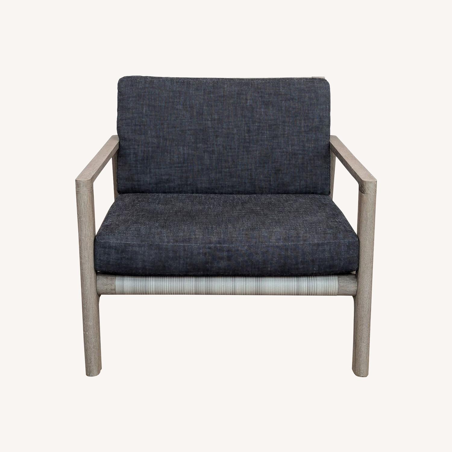 Seller's Notes:The Mesa outdoor chair has mid century style constructed of weathered teak with upholstered quick dry cushions.. Brand: Restoration Hardware. Model: Mesa. Material: wood,fabric. Seat heigt: 16. Retail price: $2760. Gently used - any blemishes or damage will be included in the photos. #SKU: 1063525. Tags: transitional,teak,modern,mid century modern,fabric