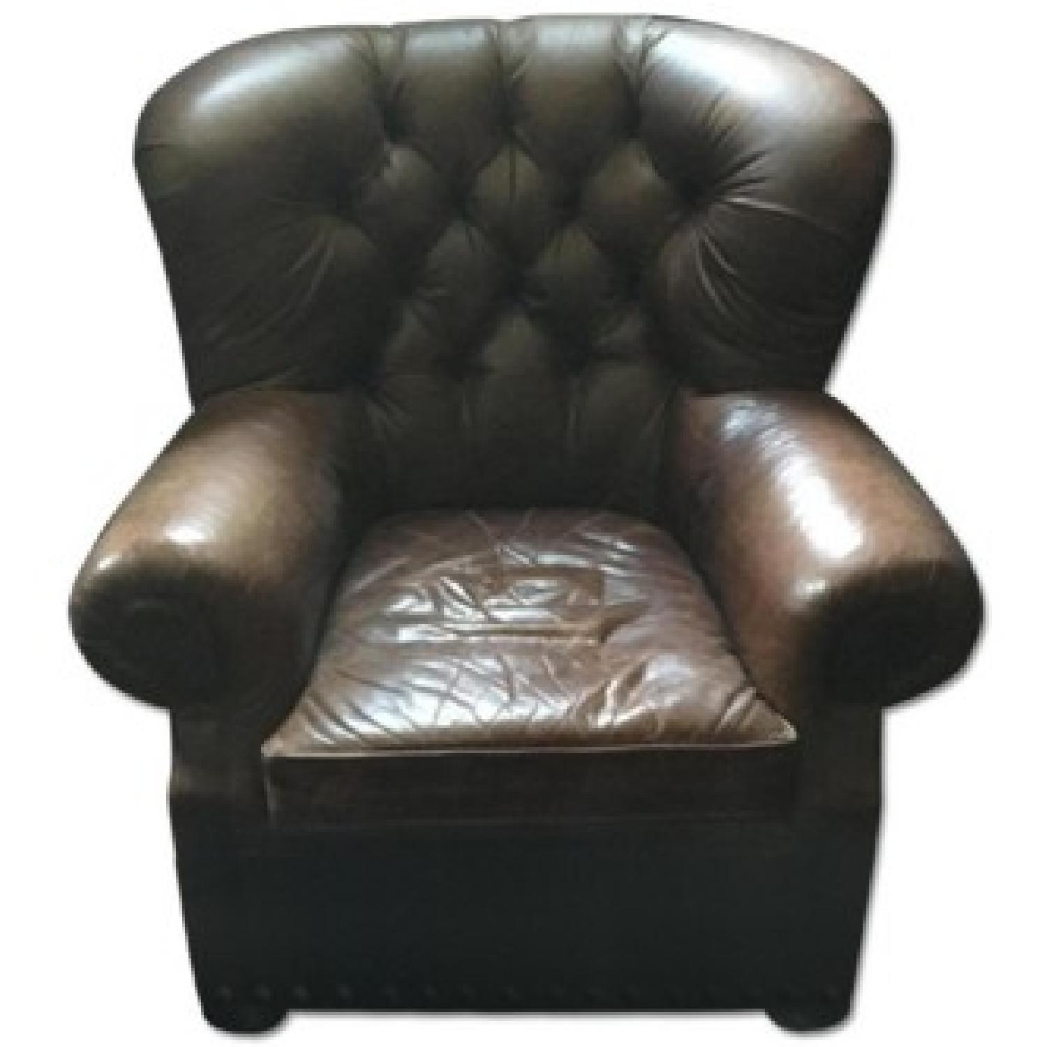 Seller's Notes:Listing for Chair & Ottoman: 1 - Restoration Hardware (purchased here in 2013): Mitchell Gold Brown Leather Chair Color name: Olde America Ranch - 703 (dark brown leather) Style: almost same as the churchill chair at RH now Great condition, rarely even sat in. 2 - Restoration Hardware: Mitchell Gold Buster Brown Leather Ottoman Similar to the Churchill leather ottoman on RH now. Great condition, only one owner, smoke and pet free home. One owner, smoke and pet free home.