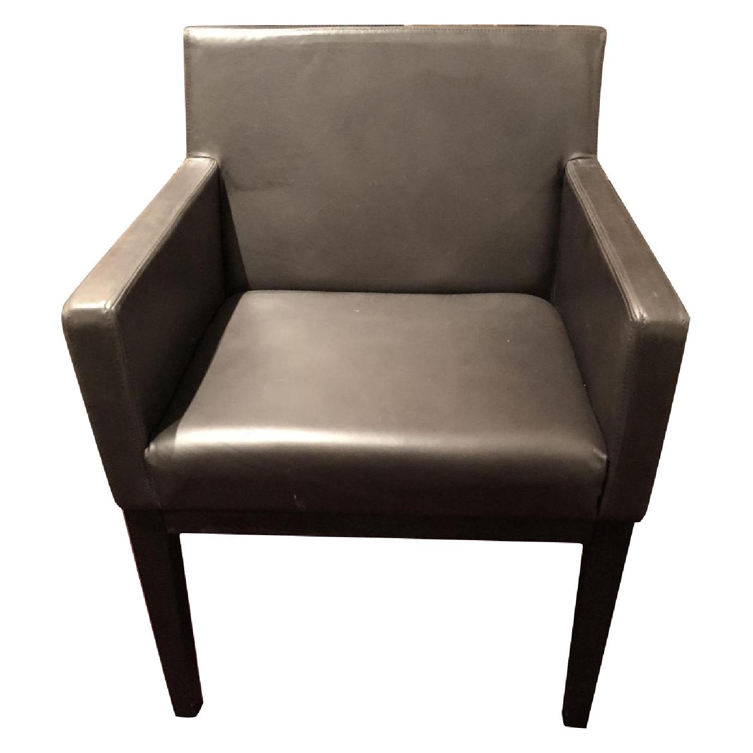 Seller's Notes:Purchased direct from Restoration Hardware two years ago. Lightly used, normal wear and tear. Italian Milano leather in graphite. Brown oak finish. Also selling matching dining chairs (armless) and a Parsons dining table on separate listings.