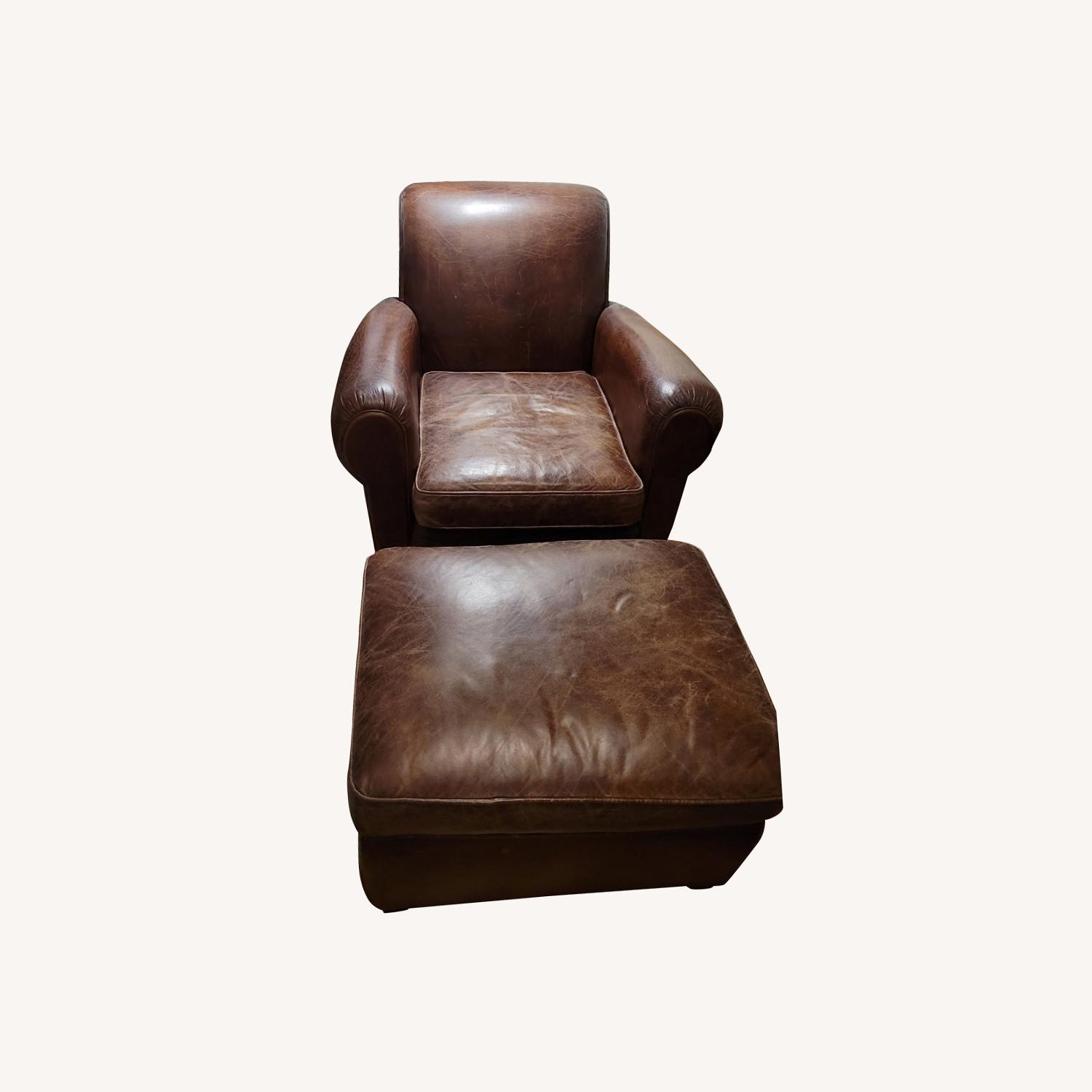 Restoration Hardware Parisian Leather Club Chair & Ottoman