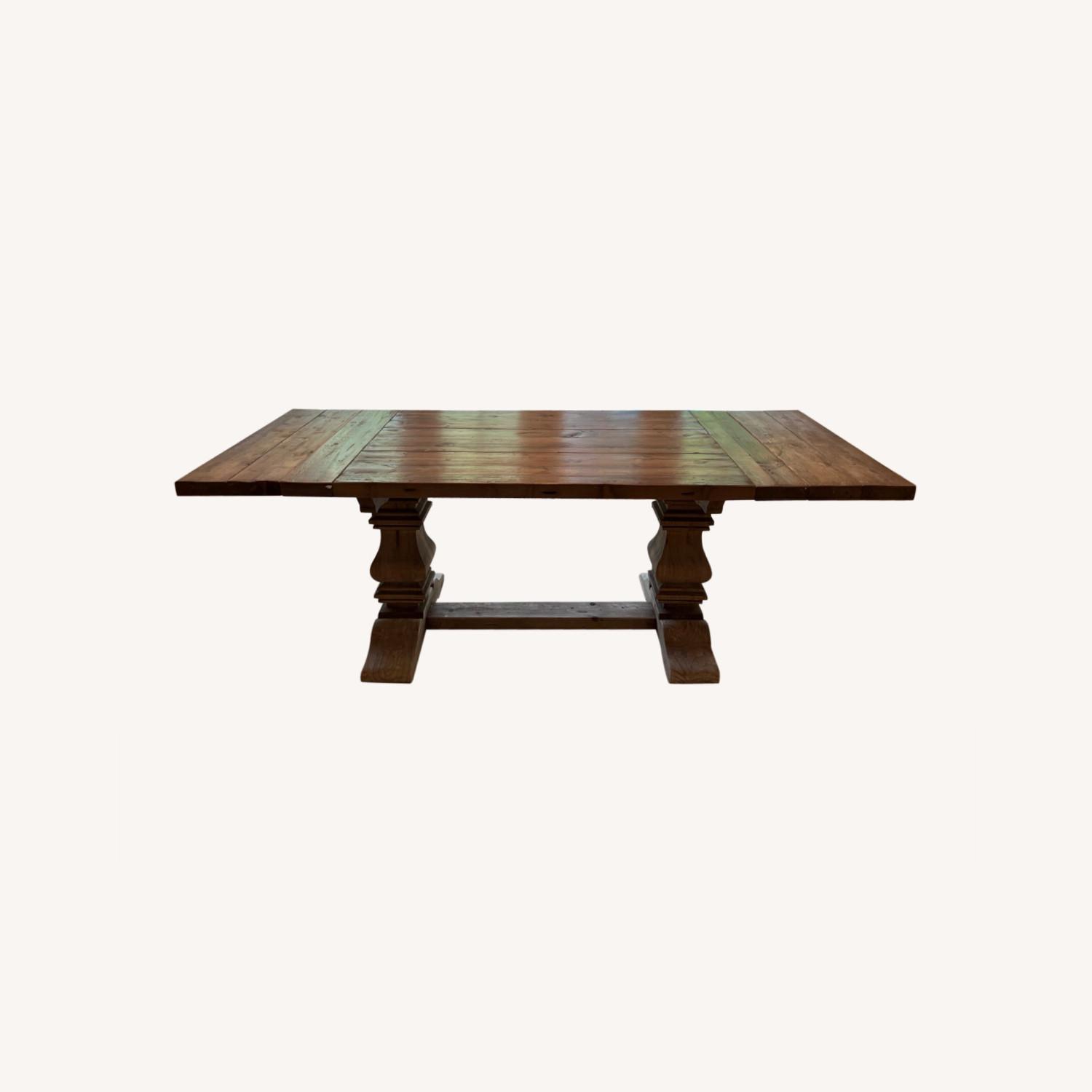 Seller's Notes:This beautiful table is a Restoration Hardware classic. At 60” long, it expands to 84” with the leaf extensions on either end (84” size is pictured in the photos). To preserve and protect the natural wood, we coated the top of the table surface (not the lower body of the table - legs and feet) with a thin coat of polyurethane. There is still a sign of use on the table which is Restoration hardware’s intent (feel free to call them and ask about this finish and the expected look after using it for 1-2 years). The table is intended to look rustic and is a beautiful piece!