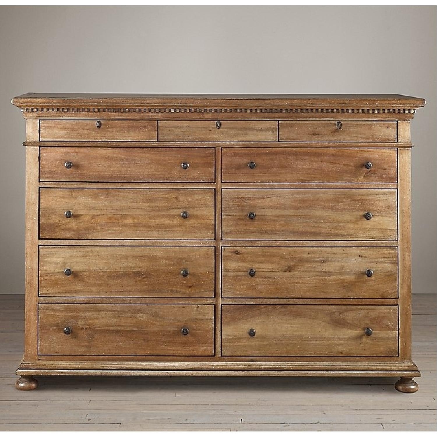 Seller's Notes:Evoking the architectural classicism of turn-of-the-century design, our collection from designer Geoffrey Hawkes is grand in both scale and beauty. Distinguished by hand-carved fluted cornices, corbels and dentil detailing, our timeless collection is expertly constructed of hardwood with enduring mortise-and-tenon joinery.