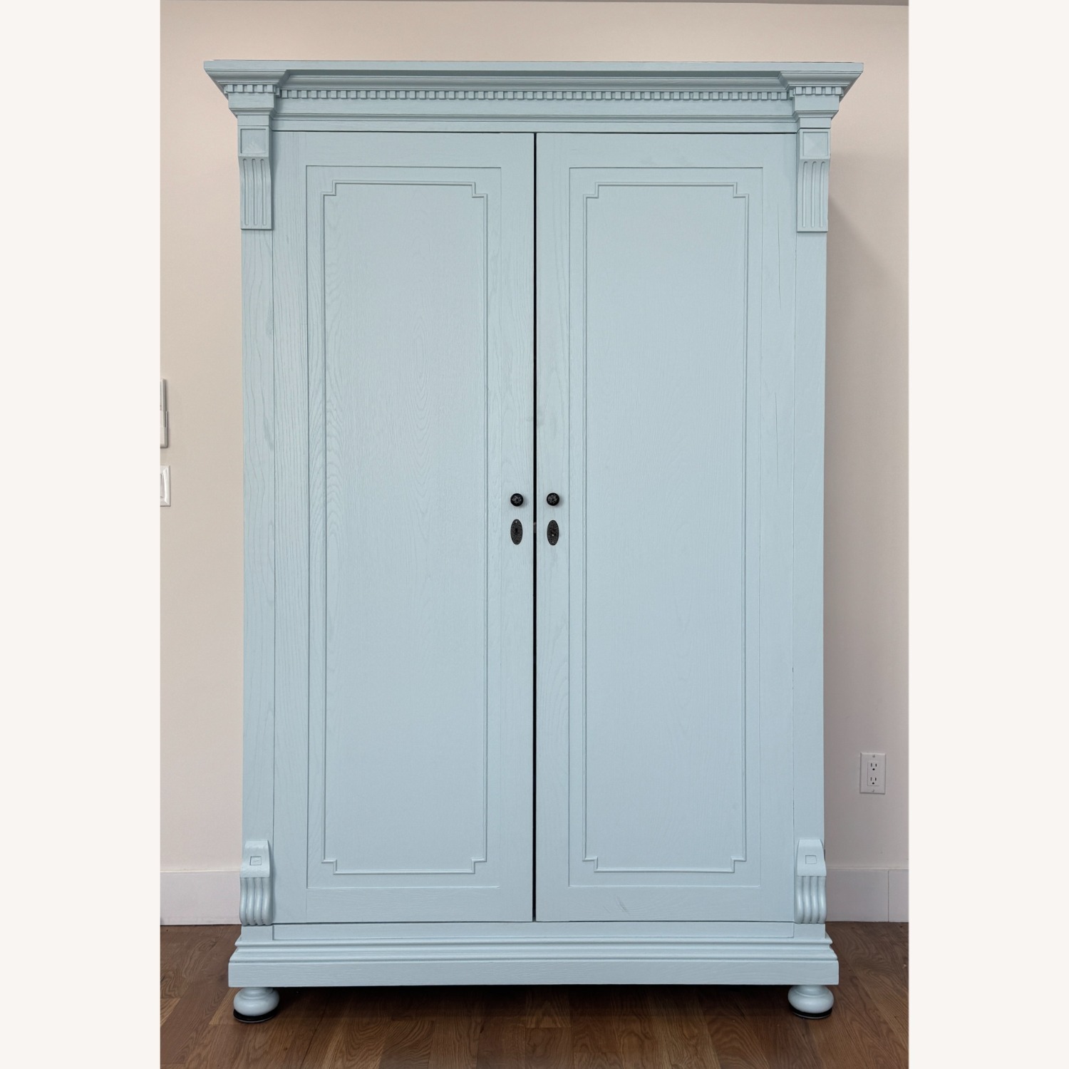 Functions as a wardrobe with a removable rod and shelf, and as an entertainment center with a wire management system built into the back panel for easy and organized media hook-up