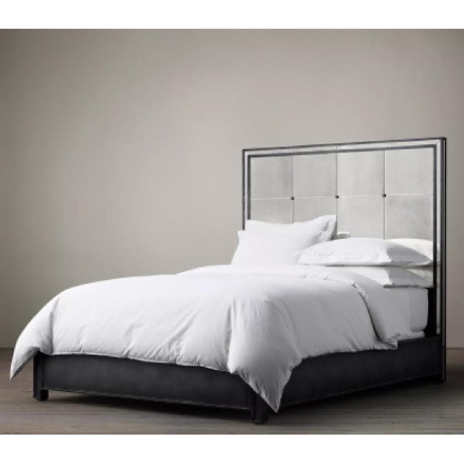 Seller's Notes:Recalling the streamlined simplicity of French Art Deco furnishings, Strand strikes a harmonious balance between understated glamour and functional design. Constructed with waterfall edges, the mirrored surfaces are aged for an antique patina that's complemented with dark metal trim. 2 Matching bedside tables are available too!