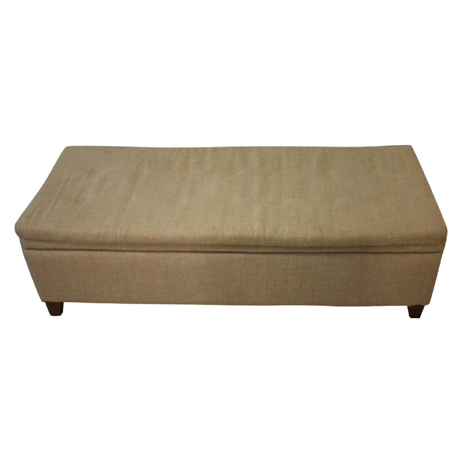 Seller's Notes:Storage bench originally purchased at Restoration Hardware in 2014. Goes at the foot of a full or queen size bed, and good for holding bed linens and towels. There are some very faint spots that are hard to notice, but are visible on close inspection. Please see close-up photos.