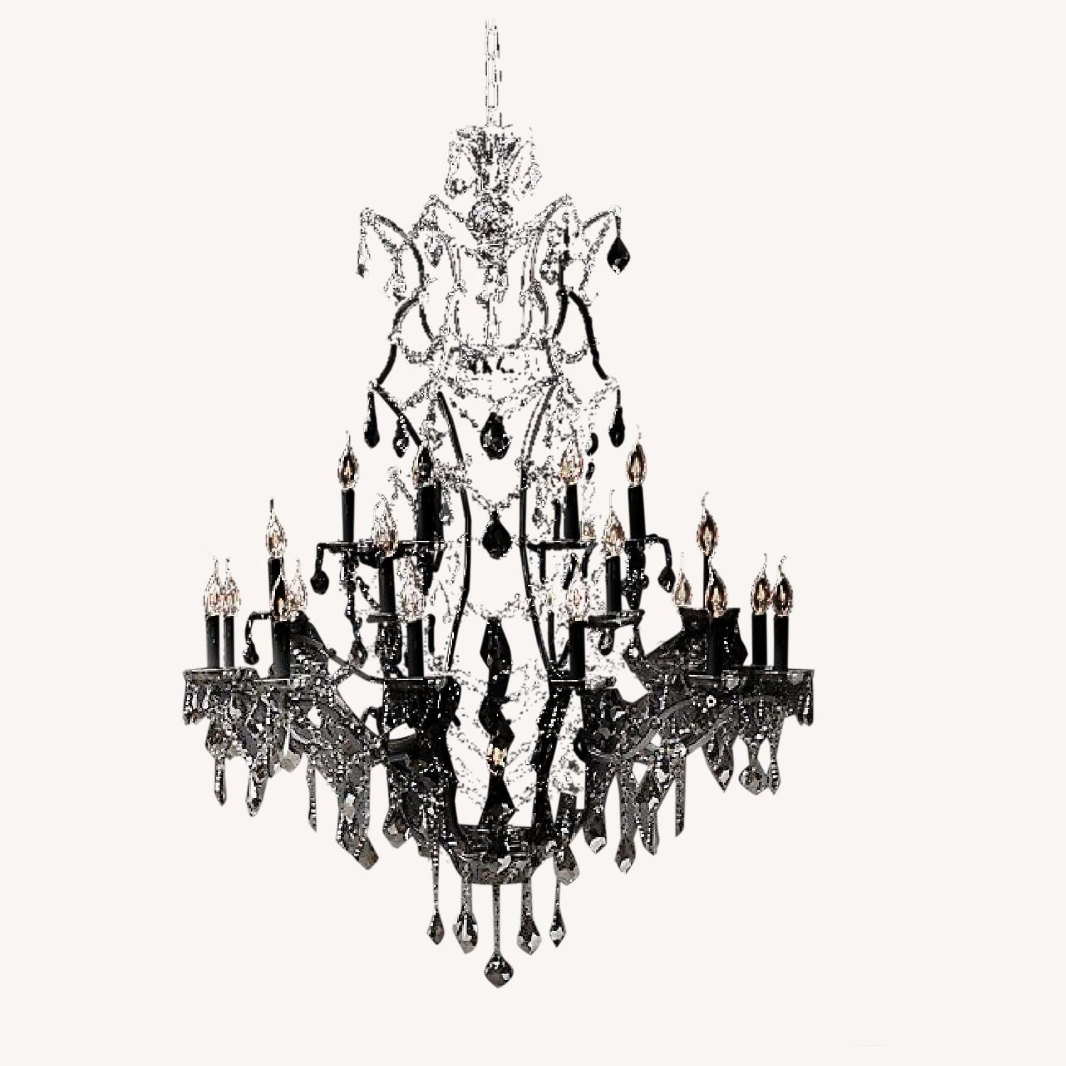 Seller's Notes:Very good/original condition. Unaltered, Missing a few crystals, but cannot tell when hung 19Th C. Rococo Iron & Crystal Chandelier Extra-Large Purchased from Restoration Hardware for $3,500 Hung in local Wburg Bar/Restaurant Needs to go asap due to remodeling