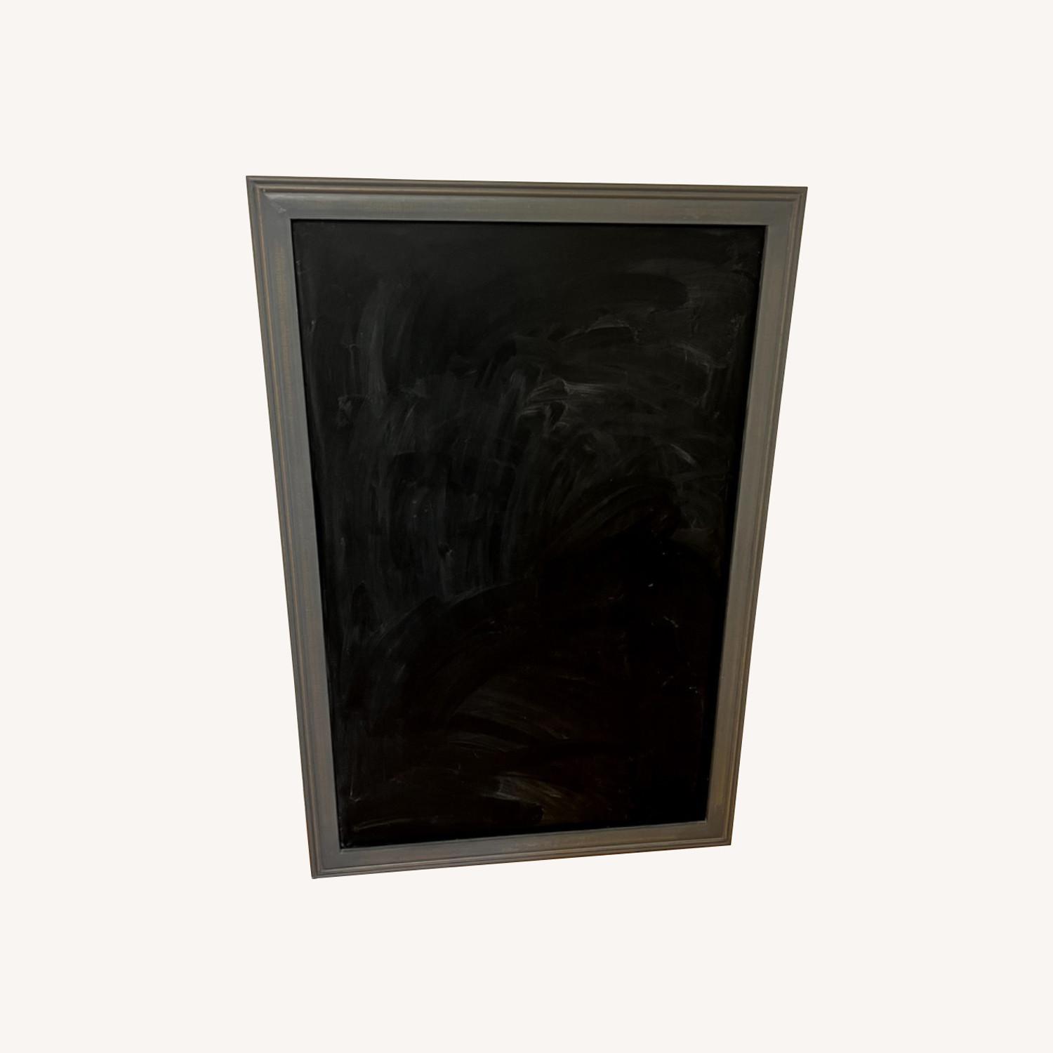 Seller's Notes:This is a chalkboard originally from Restoration Hardware Baby and Child. It has a weathered wood frame that's a gray color. It has no damage to speak of. It can be tilted against a wall, mounted using the brackets on the back of the chalkboard or hung with the wire also attached to the back. It looks great and we've used it both as just an artistic piece in our living room and as an actual chalkboard in a kid's room.