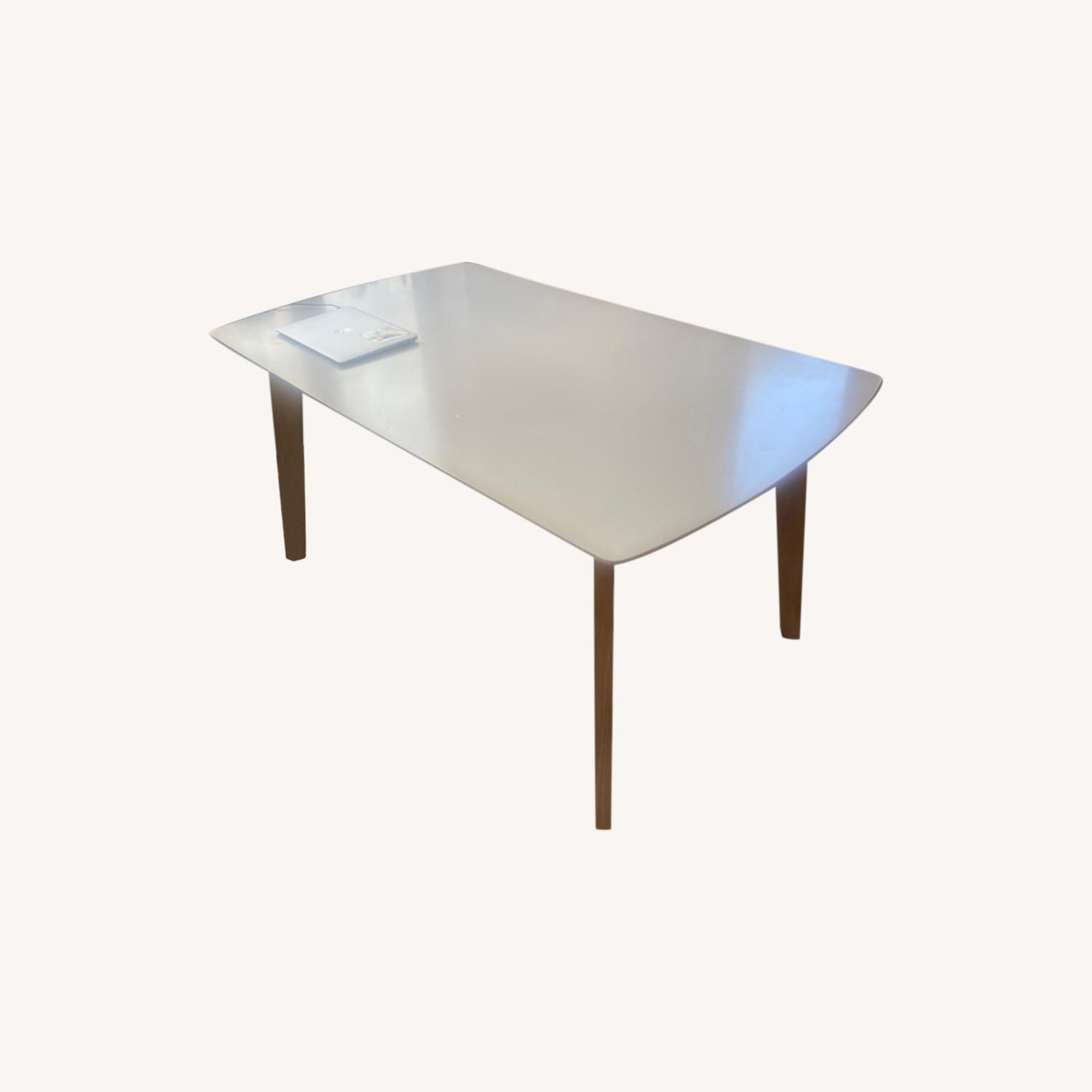 Seller's Notes:I love this table! It’s super minimal yet functional! Amazing Dining Table - good condition, light wear and tear (Originally - $310) Dimensions (Overall): 29.37 Inches (H), 35.37 Inches (W), 59 Inches (unextended length) Chairs in photos, not included https://www.target.com/p/59--34--retro-modern-wood-kitchen-dining-table---saracina-home/-/A-51468796