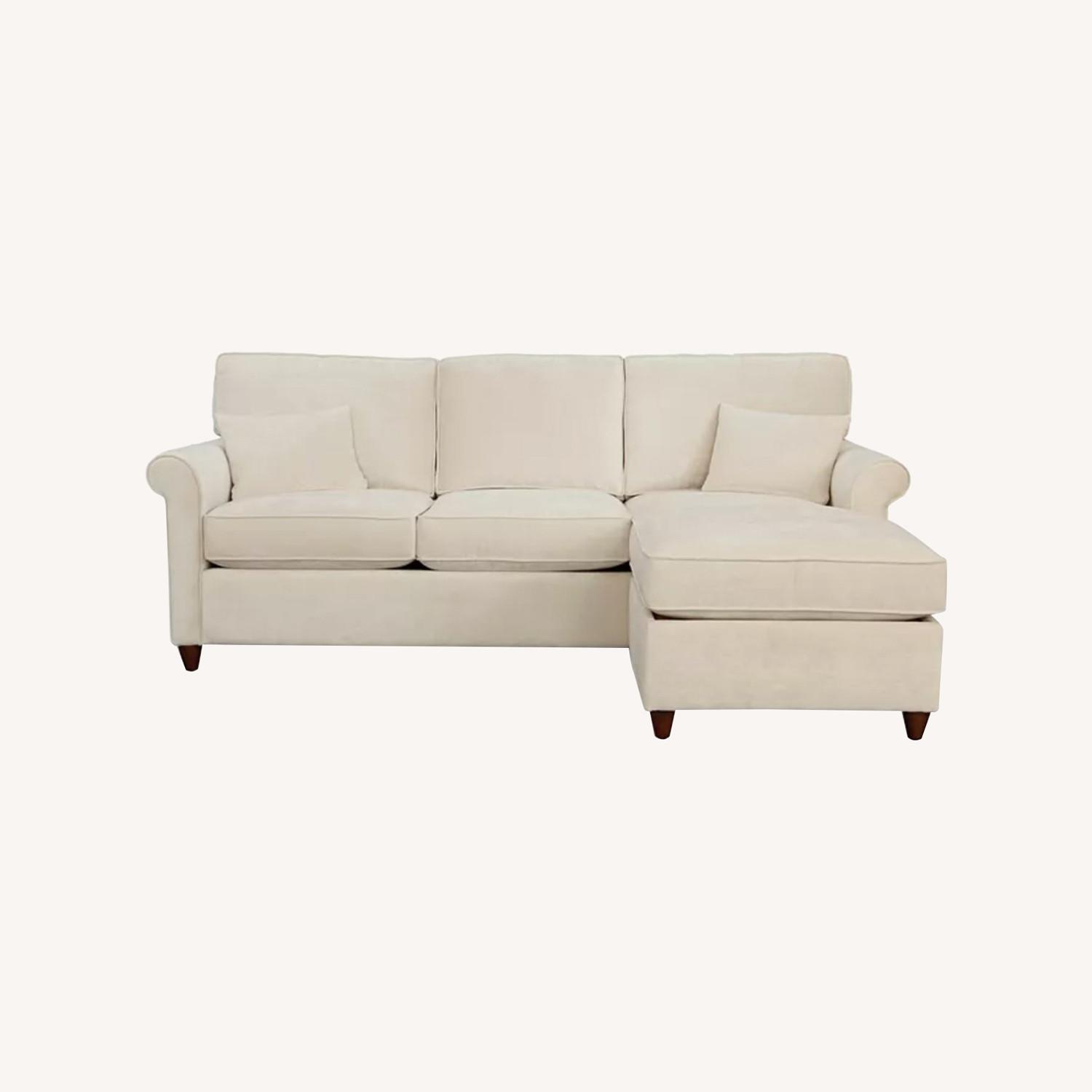 Seller's Notes:Contemporary two-piece sofa with reversible sectional and removable legs. Color is called "gypsy cream" with soft microfiber upholstery. Link to couch: https://www.macys.com/shop/product/lidia-82-fabric-2-pc.-reversible-chaise-sectional-sofa-with-storage-ottoman-created-for-macys?ID=4963607 Total approx. dimensions: 82''W x 63''D x 32''H I'm redecorating so this lovely couch is looking for a new home. Full transparency, this it needs a professional cleaning. Cleaning costs about ~$200 so I've taken this off the price https://www.angi.com/articles/how-much-does-furniture-upholstery-cleaning-cost.htm. I'm including the couch covers as well. I hope it finds a good home!