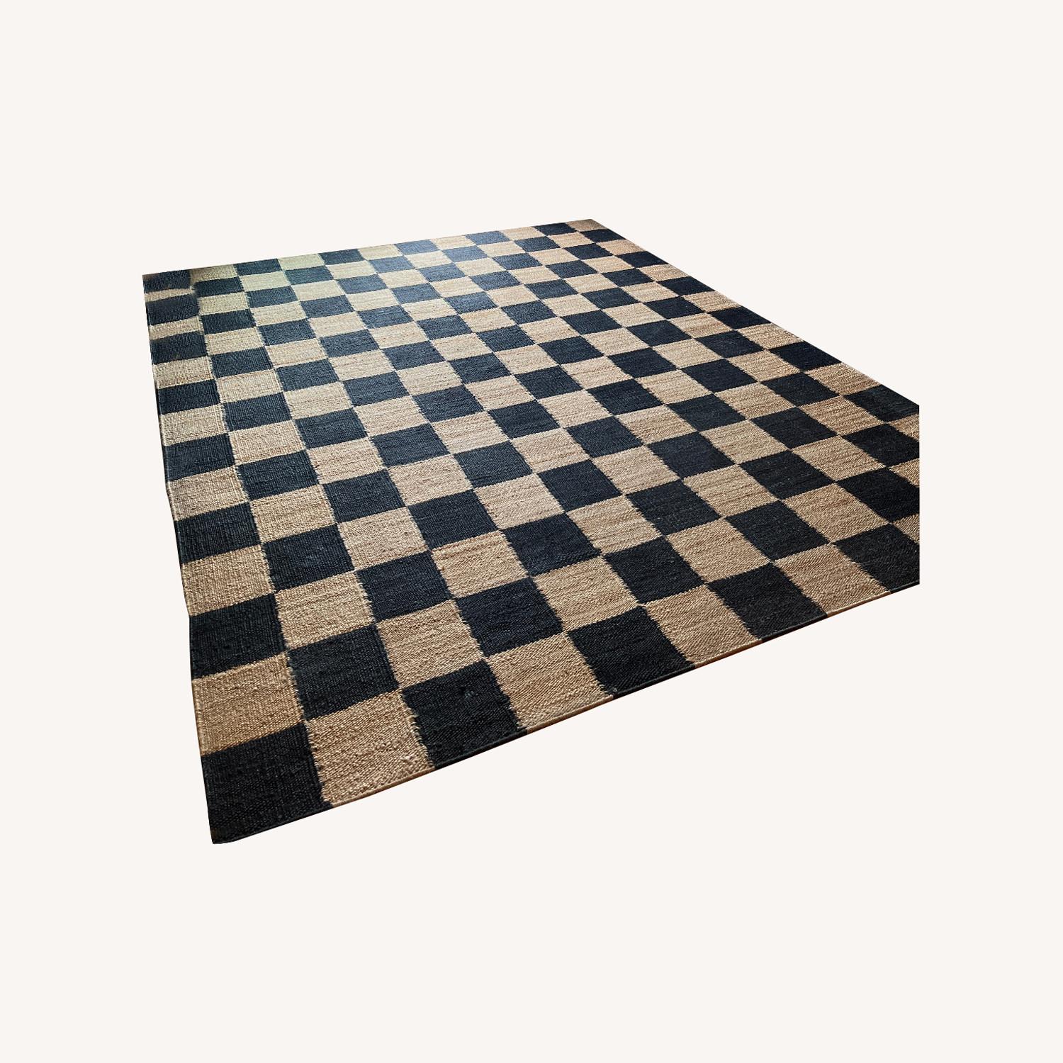 Seller's Notes:Changed out the rug in my living space and no longer need this one. It's a great, hard-wearing rug from Revival's jute line. Black and natural checker print always rec'd lots of compliments. Have a dog and hair vacuums up super easily. There are a couple snags, pretty normal for a jute rug, but it's generally in great shape and only a year old.