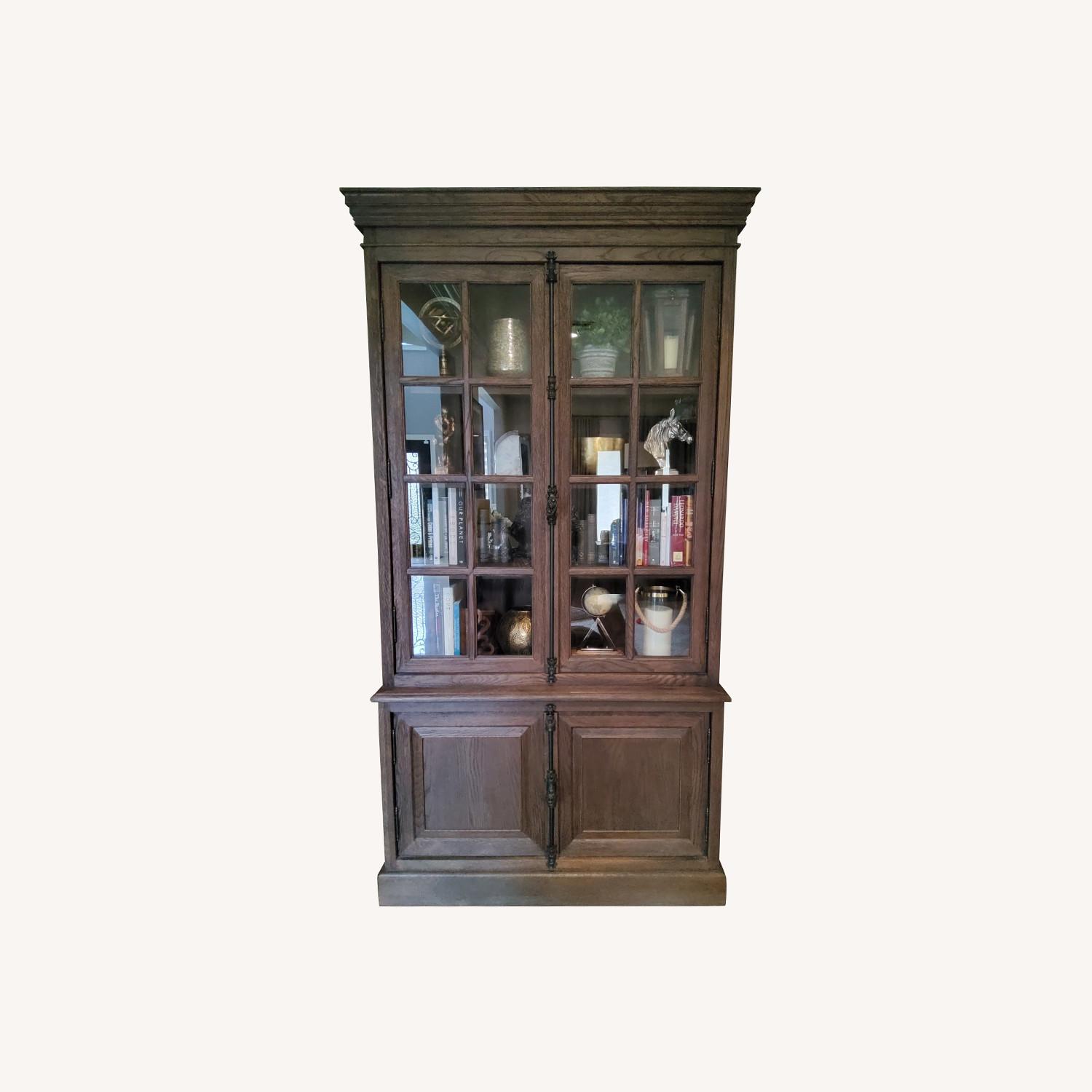 Seller's Notes:$1250 each I have 2 exact cabinets will sell separately RH French Casement Double Door Cabinet Crafted of oak with fine veneers with full length cre`mone casement hardware Panel & Glass doors Beautiful Crown Molding on top Brown Oak Drifted with distressed Black Bronze hardware 3 shelves on top 1 shelf on bottom