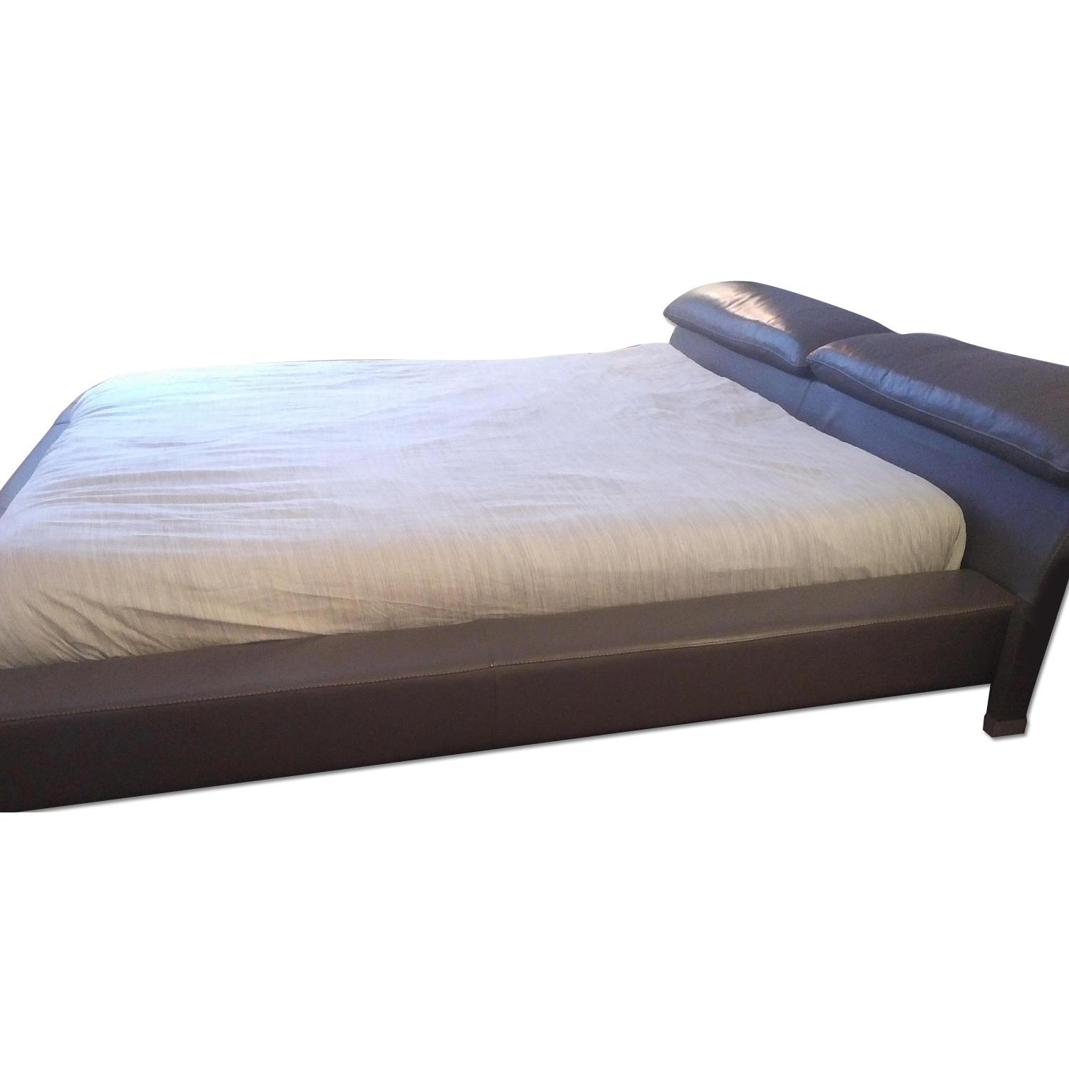 Seller's Notes:Upholstered in TENDRESSE leather 1.5mm thick, corrected embossed grain and matte pigmented finish. Back cushions and headrest manually adjustable, padded with foam 21M kg/m3 and cotton batting. Bed frame and headboard padded with foam 21M kg/m3. Structure in solid wood, plywood and particle board. Base in aluminum cast, silver grey tin finish. 86w x 29.1"h x 106"d
