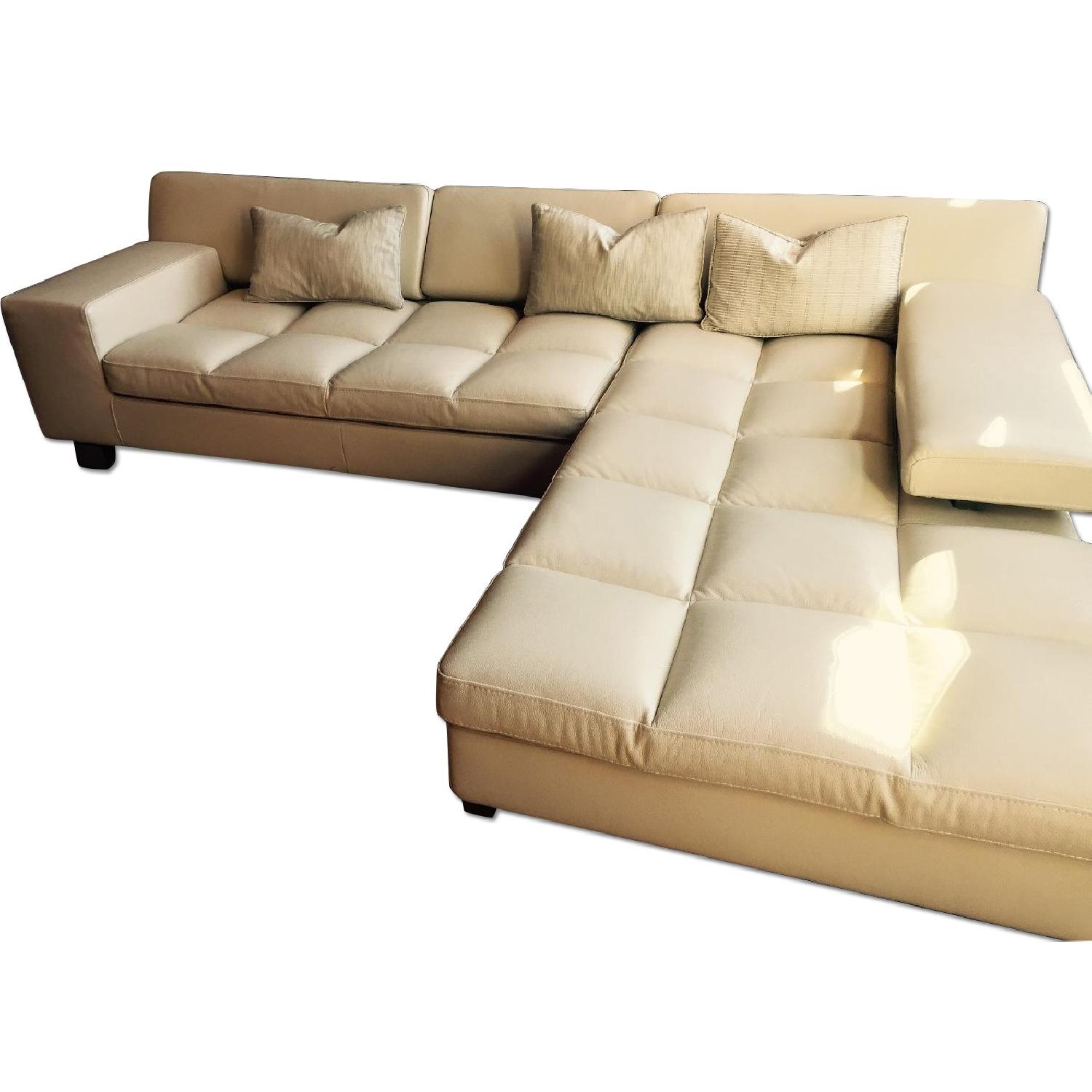 Seller's Notes:Incredible Roche Bobois leather wide-tufted sectional with (3) fully functional, adjustable seat backs. Purchased from Roche Bobois on Madison Avenue. We have taken extremely good care of this sofa. We used a soft cloth to clean it weekly, and Coach leather conditional to condition it once a year. Small tear on the underside fabric mesh webbing on one side of the sofa, only viewable when this piece is upside down. I LOVE this sofa, it is gorgeous but also super comfortable. We are having a moving sale and sadly this sofa does not fit our new home. So everything must go, sadly including this piece. Left arm, 69x41 Right arm piece, 80x41 wide. 30" overall height (adjustable)