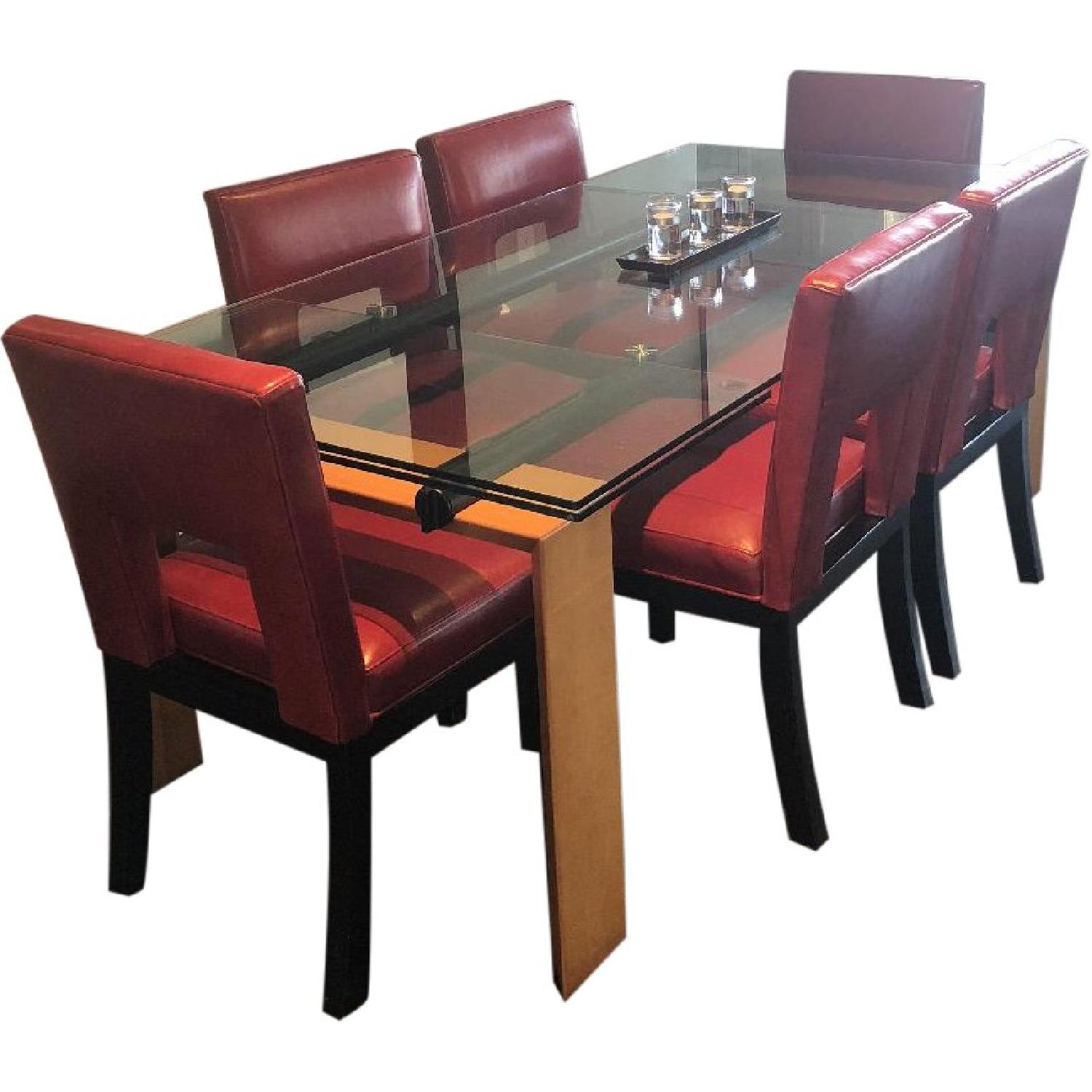 Seller's Notes:Roche Bobois Glass Dining Table that extends! Gorgeous and sleek dining table Glass extensions slide out from the table! each extension is 19" L 39"w x 79" or extend to 39"w x 98" or to 39"w x 115' long Please note that the glass has scratches that can be hidden (and were caused) by the center piece or if preferred you could have professionally buffed