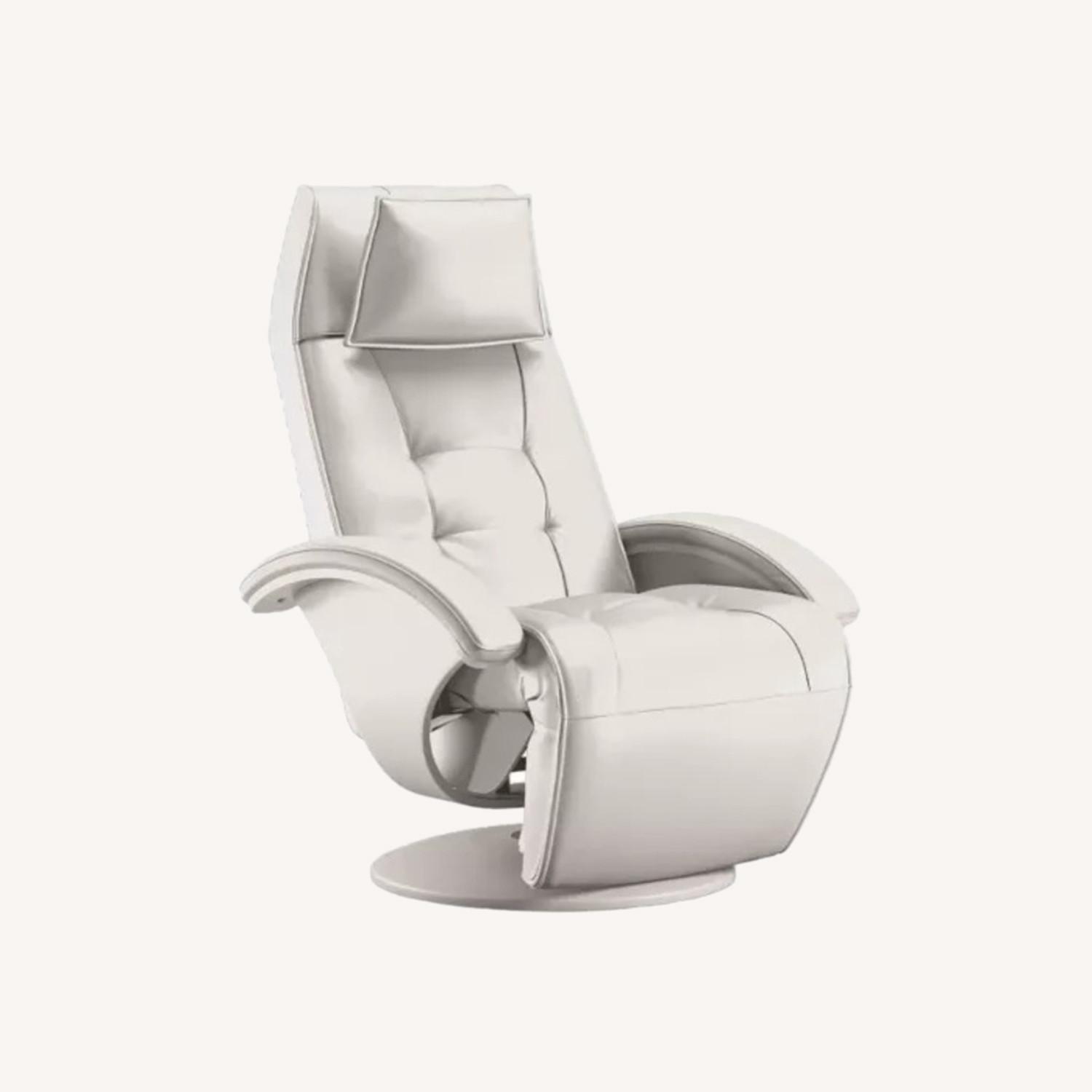 Seller's Notes:Roche Bobois light gray leather reclining chair.