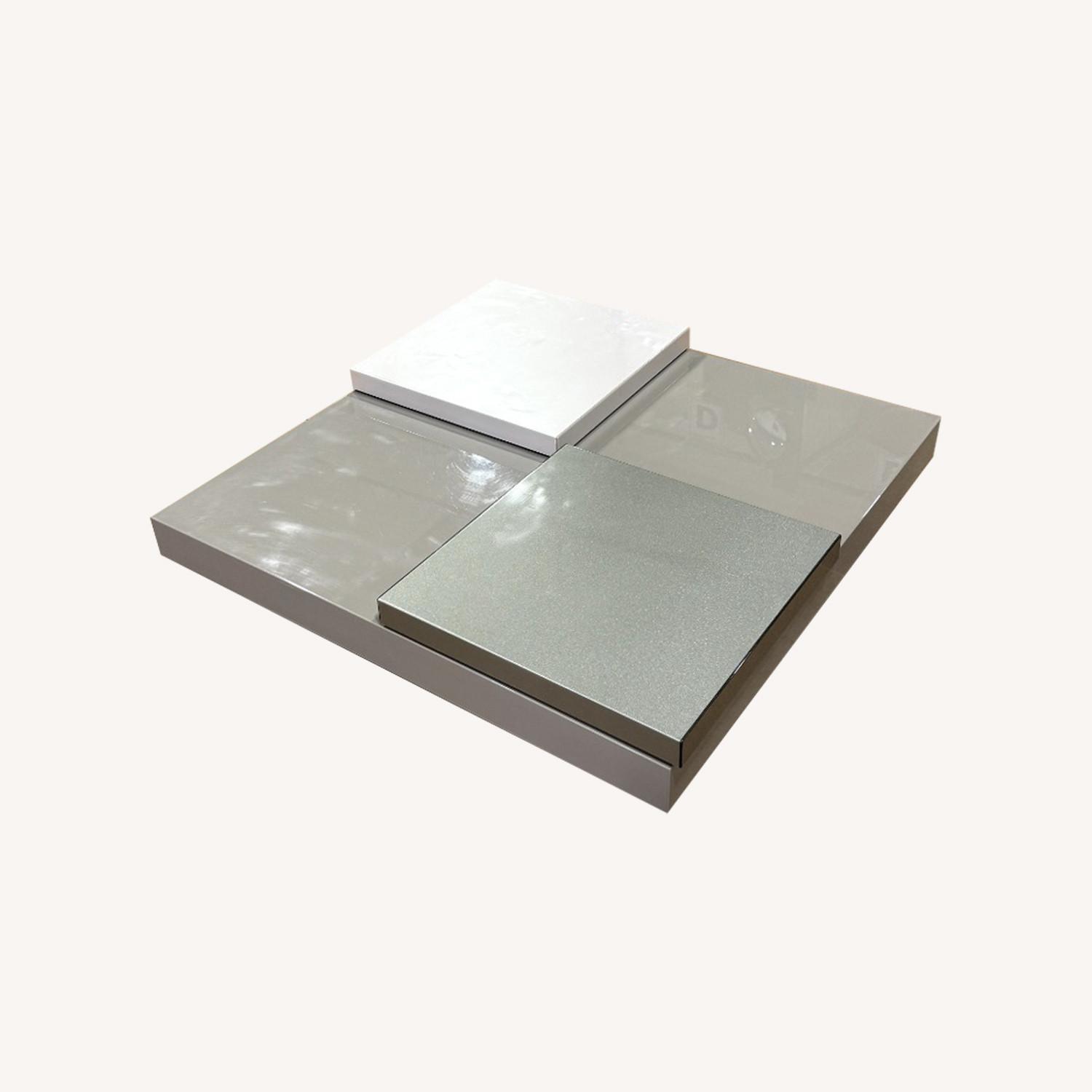 Seller's Notes:Purchased from the Roche Bobois store If you are familiar with the brand then you know these are the highest of quality. For those who are not, Roche Bobois is a world leader in furniture design and distribution, working closely with renowned designers and artists to produce pieces that last a lifetime. This Podium cocktail table features rotating elements and retailed for $3,500. It has signs of wear and tear, reflected in the price.