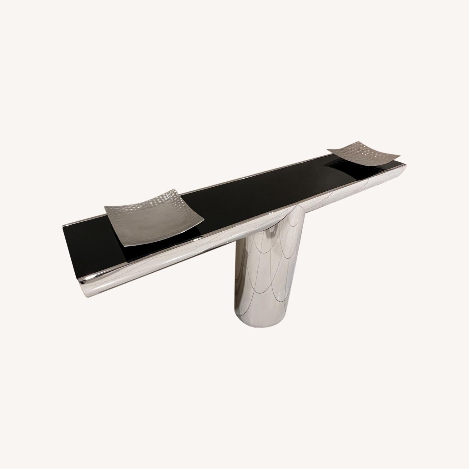 Seller's Notes:This beautiful hall table has a black top with a silver chrome body. The table is in excellent condition, it has small normal scratches of any chrome furniture.