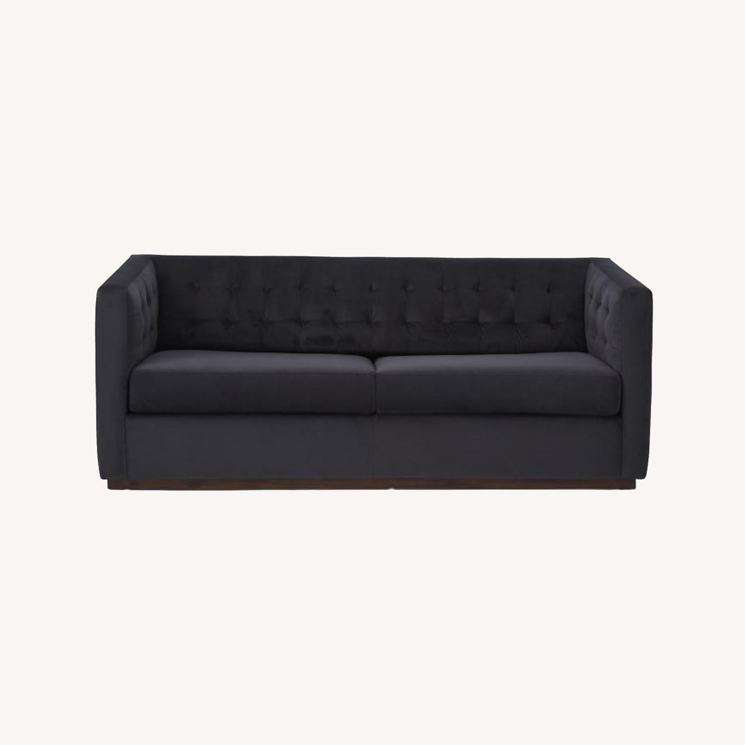 Seller's Notes:Acacia plinth base with Pecan finish. Grid-tufted back and arms. Two loose, reversible seat cushions. Folds out to reveal a Queen-sized mattress. It's a traditional spring mattress and has a pocket coil system for firm, personalized support. The Base is not removable.