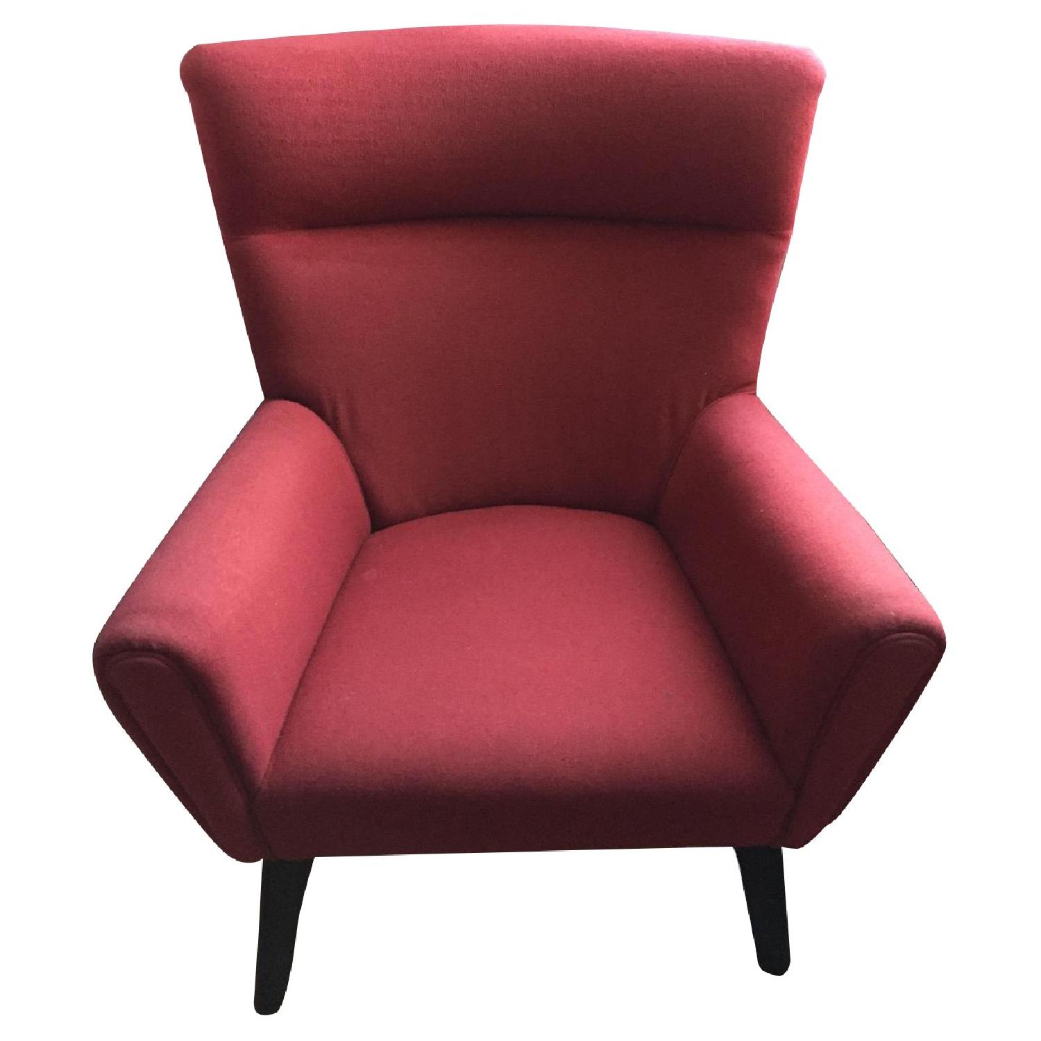Seller's Notes:We are redecorating our living space so decided to let go of this beautiful and super comfortable chair. It has a high back and sculptural wood base. It is perfect for a living room and goes well with any interior design style. Its seat is very wide so it is great to relax and stretch out. The color is deep red.