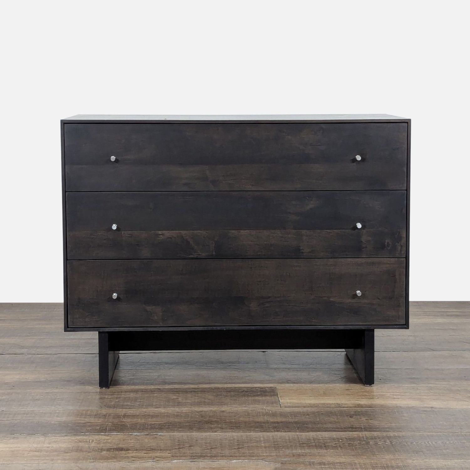 Seller's Notes:This modern dresser is handcrafted in West Virginia by skilled artisans from sustainably sourced U.S. solid wood in a charcoal stained finish with metal hardware.
