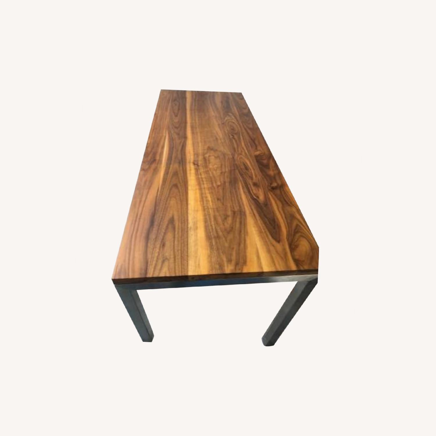 Seller's Notes:Room and Board Walnut Parsons table Timeless in design. Dimensions Overall: 60"w 24"d 29"h Apron Height: 2"h Apron to Floor Height: 26"h Back ordered until June. Has very minor wear and tear.