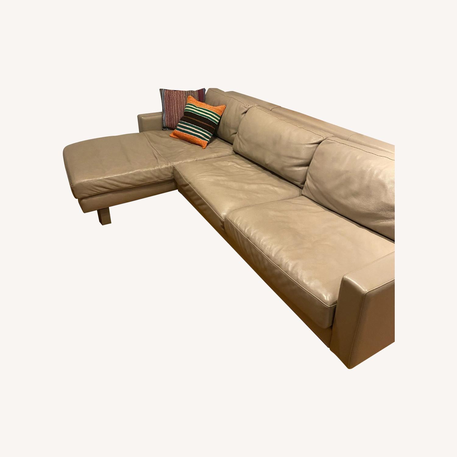 Seller's Notes:Description: Looking for a stylish and comfortable addition to your home? This 2-piece leather sectional from Room & Board is perfect! It's incredibly comfortable, deep, and sturdy, providing a great place to relax or entertain guests. The neutral tone makes it easy to fit into any home or apartment decor. Features: Material: High-quality leather Condition: Gently used, well-maintained Environment: Comes from a pet-free, smoke-free apartment Reason for Selling: Moving to a smaller apartment that can't accommodate a sectional Why You'll Love It: This sectional has been a beloved part of my home, but I’m moving to a smaller space and, unfortunately, can't take it with me. It's perfect for anyone looking to add a cozy, yet sophisticated piece to their living area. It can comfortably fit four people with space left over. Don’t miss out on this opportunity to add a beautiful, comfortable sectional to your space. *Note about height: 21 inches to top of armrest