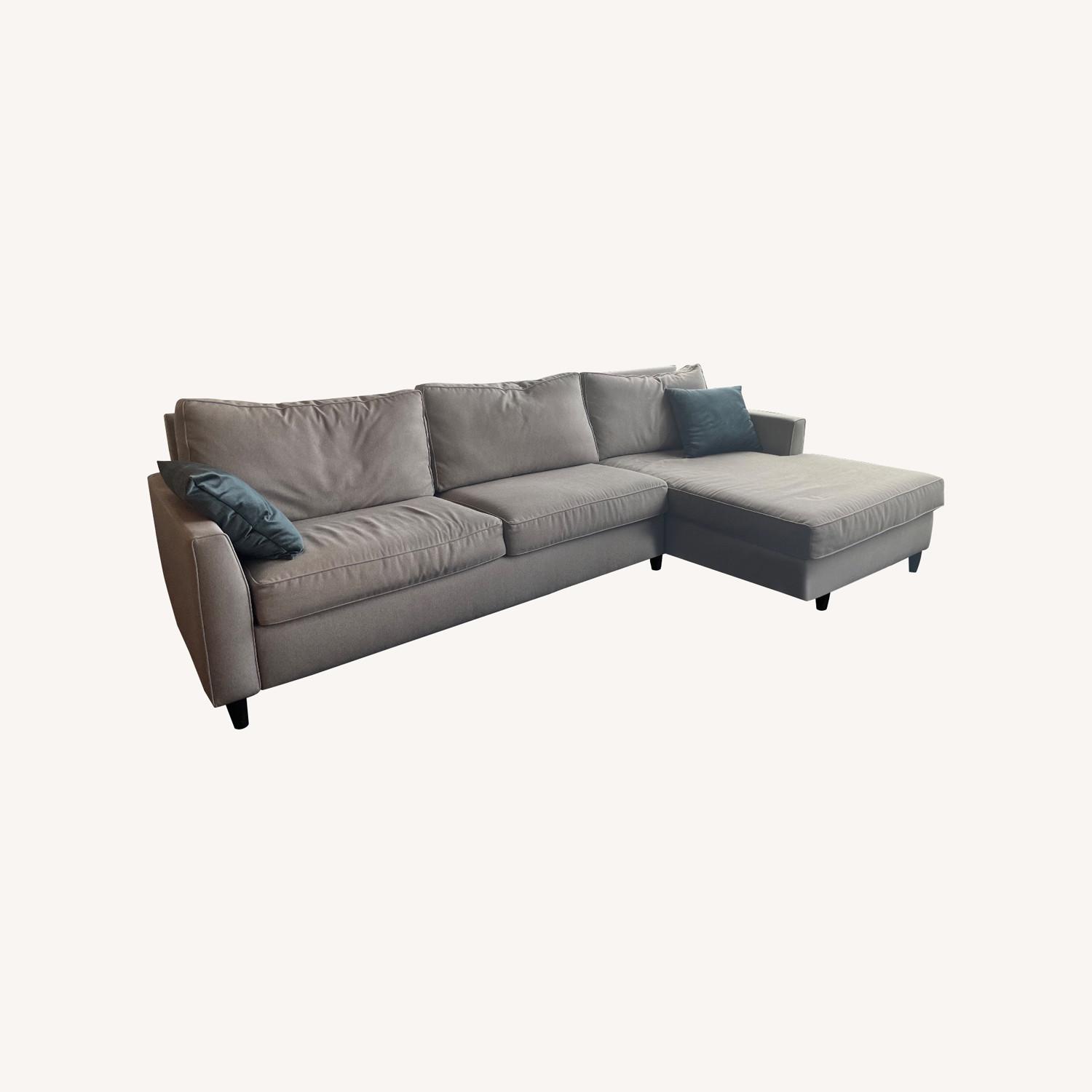 Seller's Notes:The most comfortable sleeper sofa ever. This sectional worked great in my 1 bedroom apartment to provide beautiful and comfortable seating as well as superior comfort for overnight guests. 2 pieces: right arm chaise and left arm sleeper sofa. Easy open. Grey Dawson fabric wears and cleans very well.