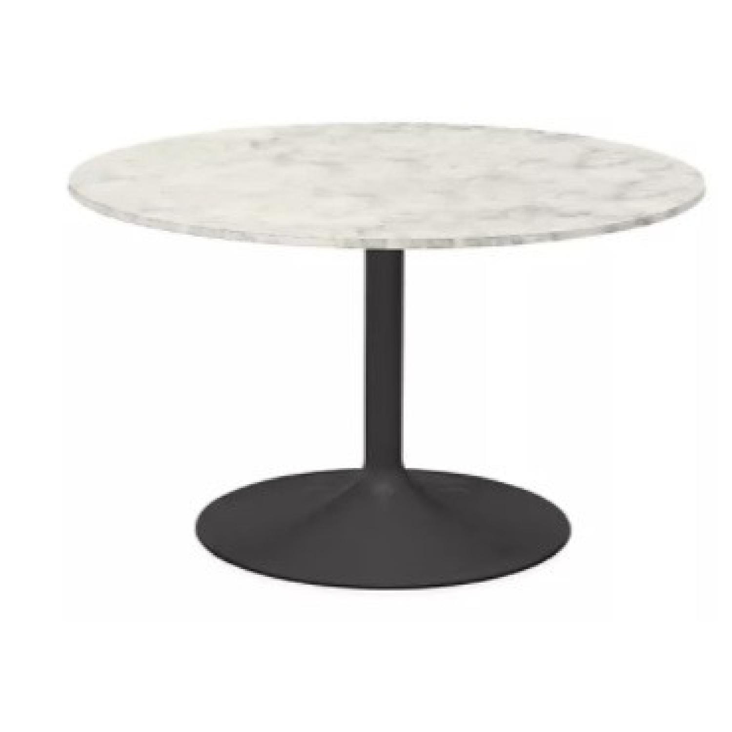 Seller's Notes:Room & Board Aria 48 diameter round table, with marbled white quartz top, graphite base. Beautiful condition, minimal wear. Delivery included.