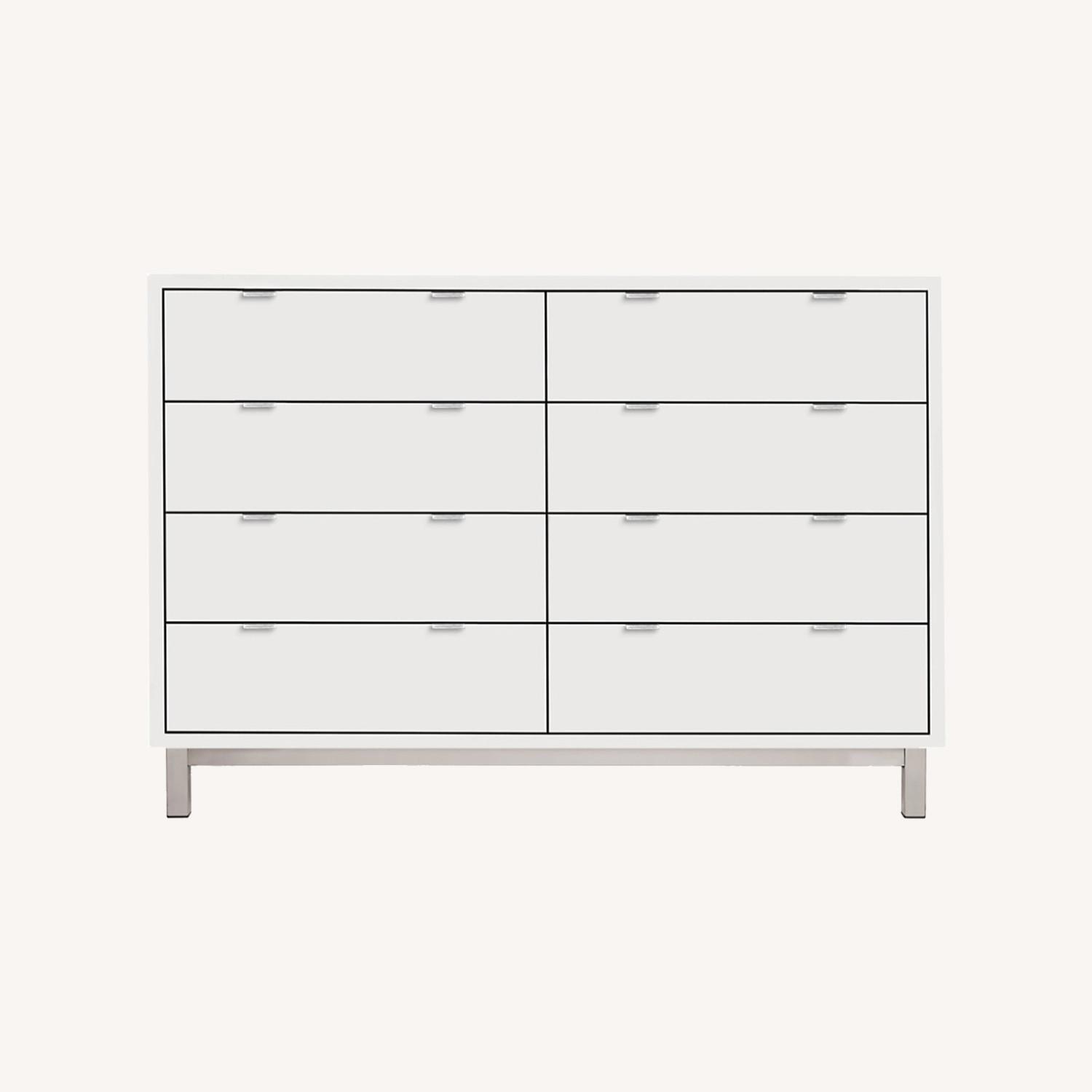 Seller's Notes:White Room & Board 8-drawer dresser. Amazing quality, sturdy dresser. It has a few scratches on it from moving it from our previous apartment. Unfortunately we didn't protect it properly during the move. Shouldn't be terribly difficult to fix it up if you want to! It is very heavy, so if you do self-pick up from us, I recommend bringing movers or very strong people!