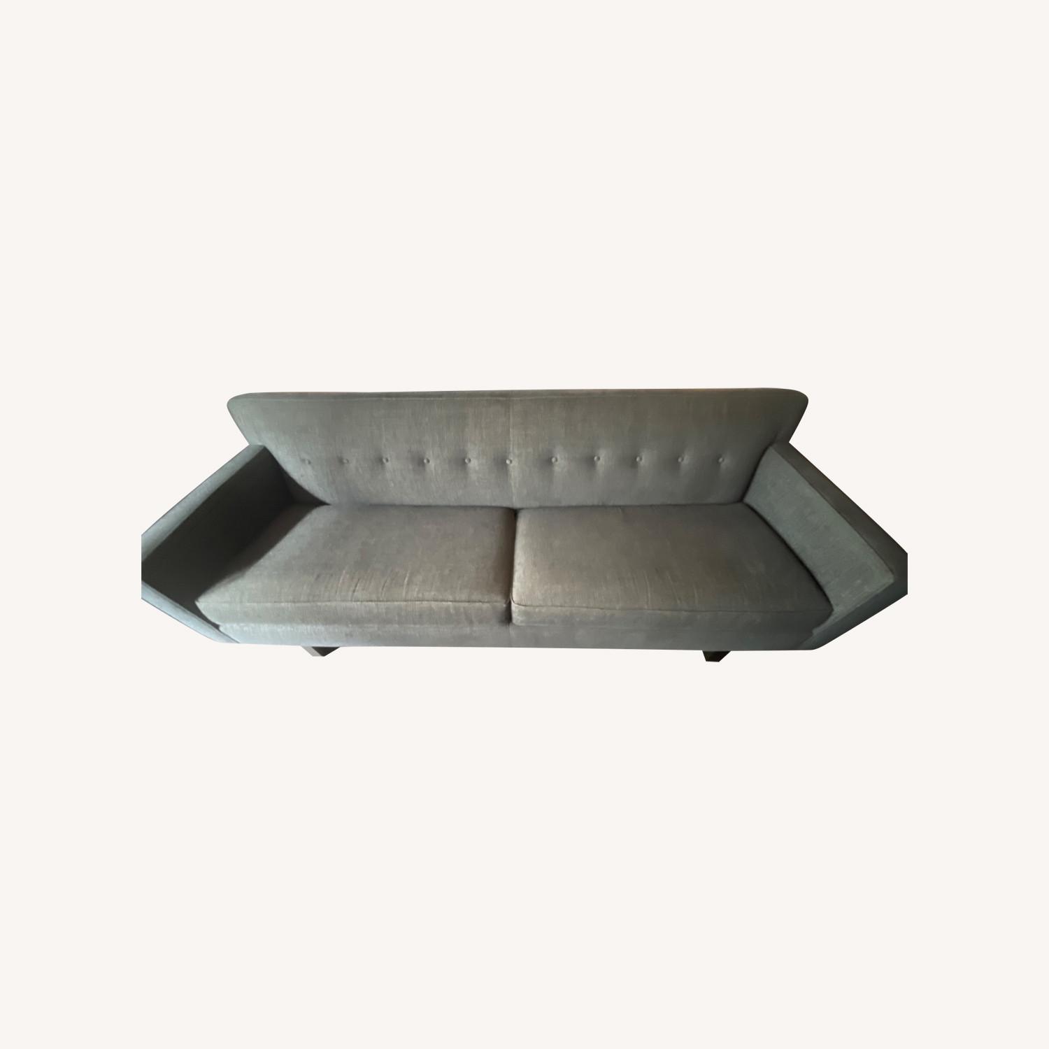 Seller's Notes:Andre sofa from Room & Board in a charcoal blue color, very comfortable and from a clean, non-smoking home. We’ve moved and need to sell our furniture. There are distinctive details like button-tufting and smart welting while being comfortable and versatile. The cushions and seats are still in excellent condition, no sagging or warping. Looks and feels great.