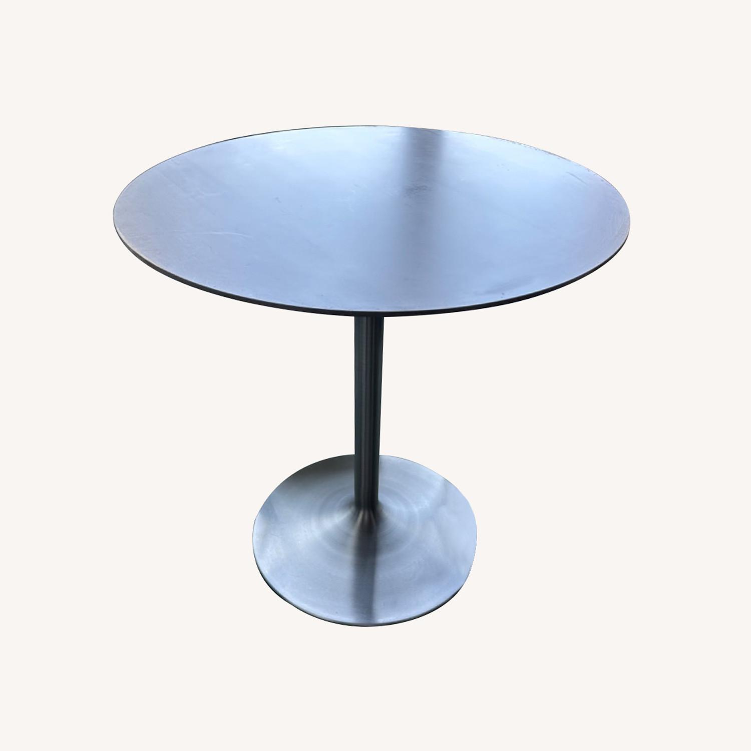 Seller's Notes:Room & Board Aria Round Counter Table with maple top in shell stain and stainless steel base. I bought a custom fit glass top that I put on top as a protector I will include. Has scratches on top on two sides of table. Base has zero scratches.