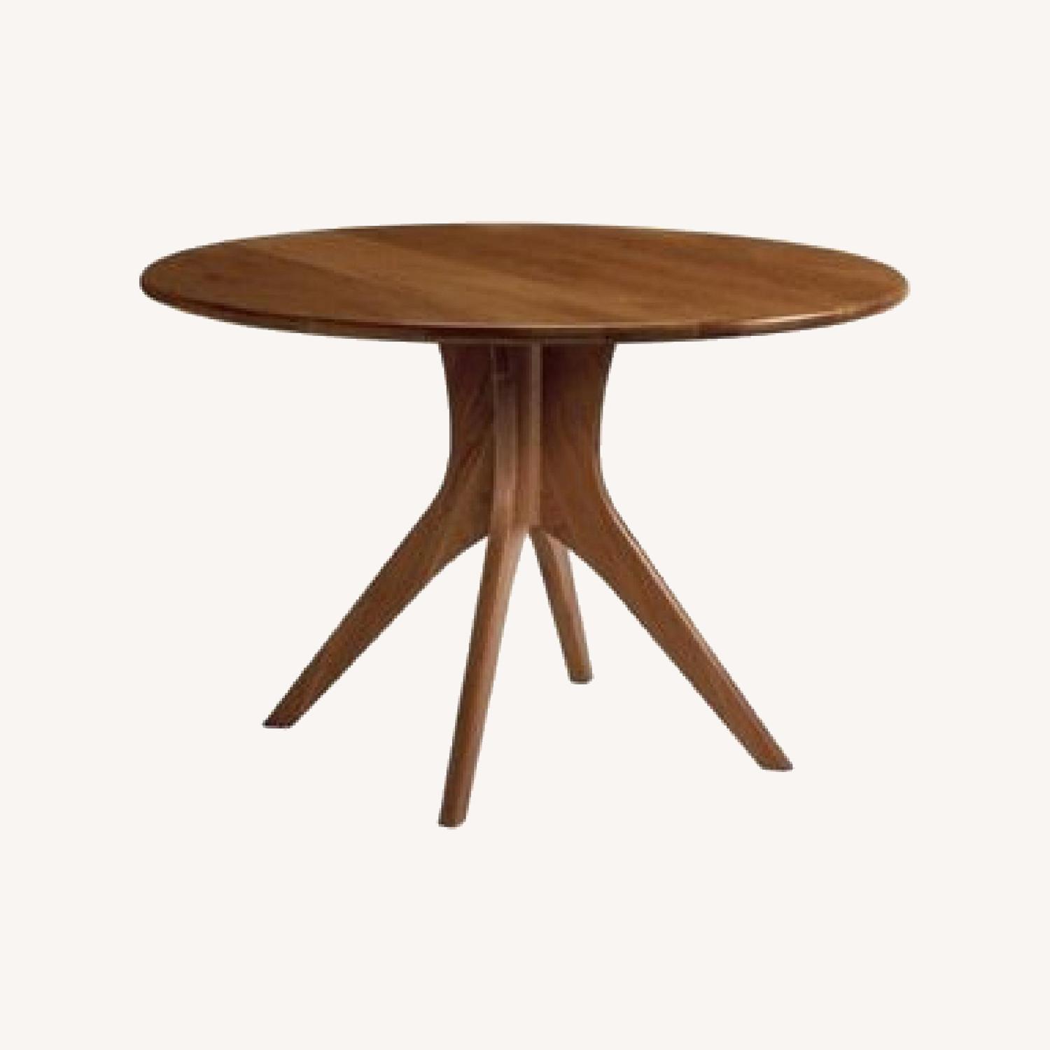 Seller's Notes:I have loved having this gorgeous cherry dining table with the unique elegantly curved base. It is big enough to seat four comfortably (am also selling the four R&B Cora chairs that go with it in a separate listing!) while still fitting in well in most NYC apartment dining spaces. It does have just two dents like the one in the photograph but because the cherrywood table also has natural wood impressions you literally can't see them - just wanted to be honest, though! It will be available for pick-up any time after the first week in October.
