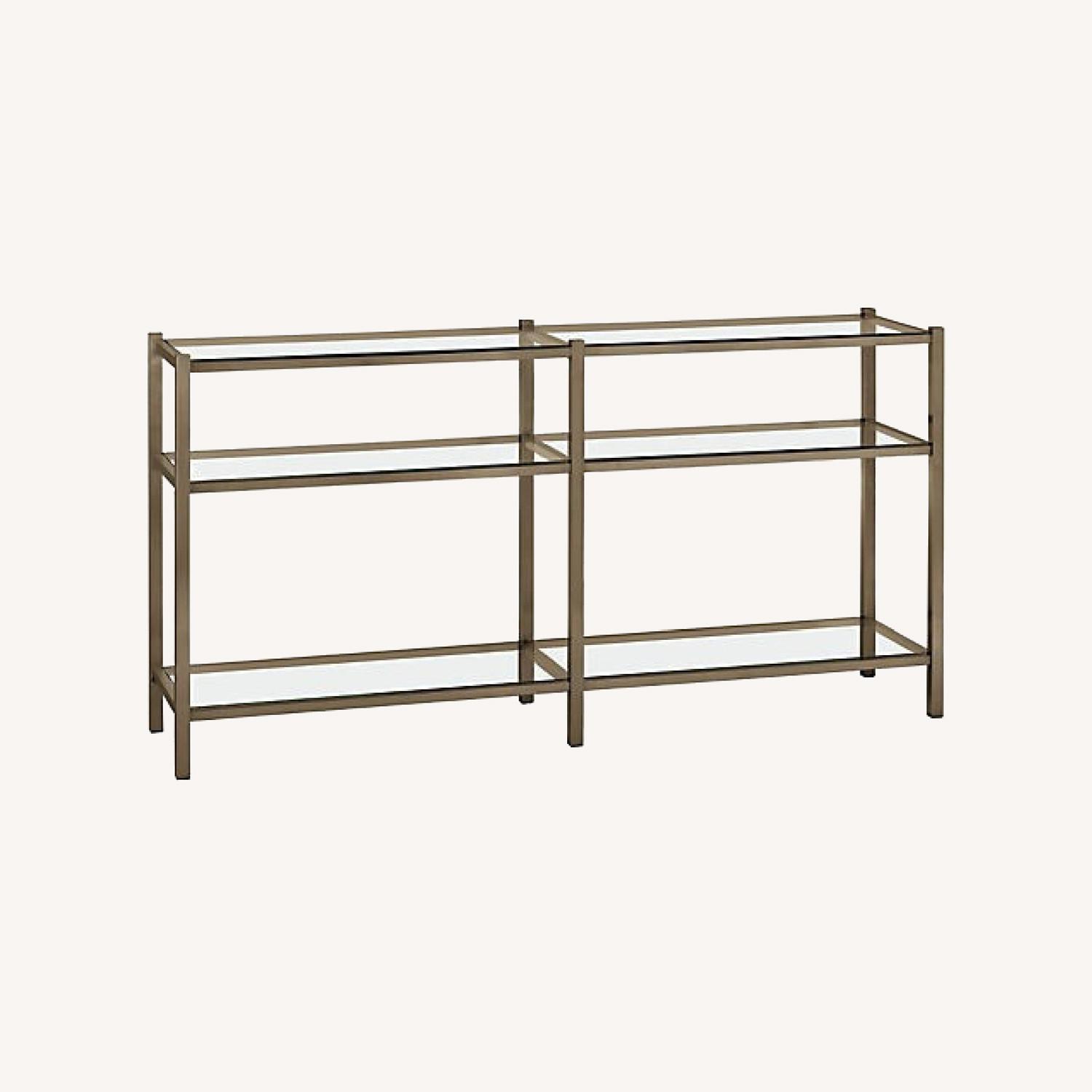 With a nod to Art Deco and mid-century styles, Brixton’s hand-welded stainless steel frame supports sturdy glass shelves. The result is a console table that yields an unexpectedly bright and airy design.