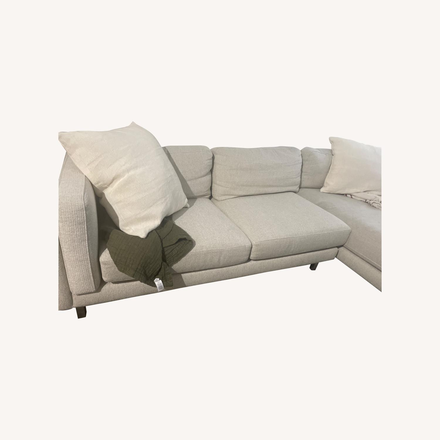 Seller's Notes:No longer need this Cade sectional. We bought it and had it for less than a year. Minor stain that is not very visible. Sofa is too small for my space. Need something bigger. But she’s beautiful and super comfortable