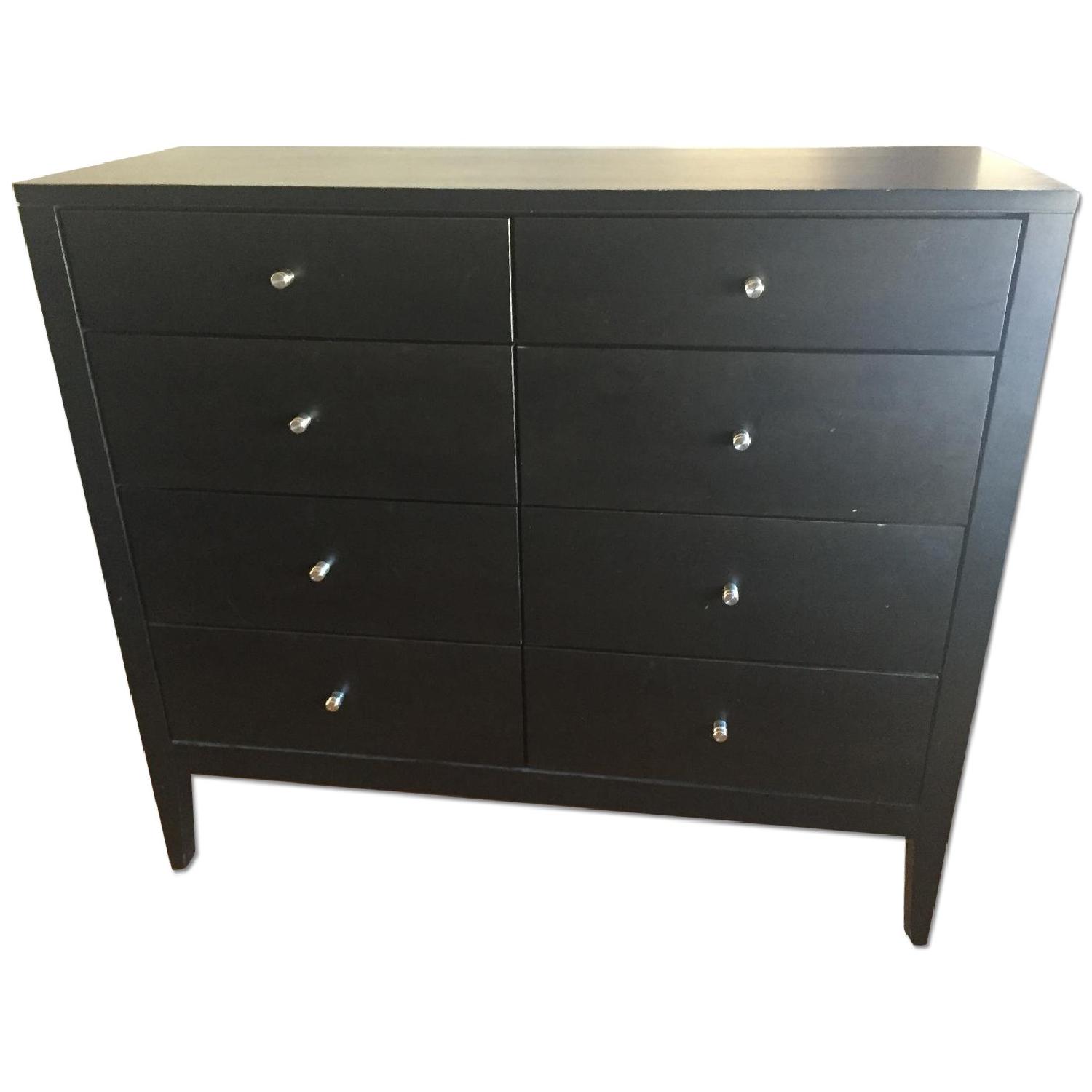 Seller's Notes:Black wood with stainless steel knobs. Part of set. Also have matching dresser, wider dresser and two night stands listed separately on the site.