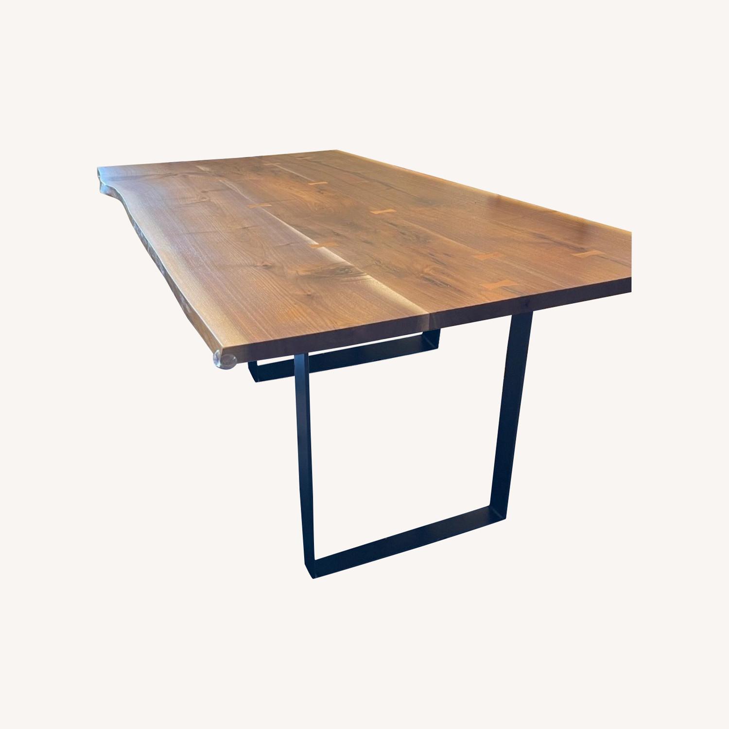 Seller's Notes:This is an absolutely gorgeous Room & Board dining table from the Chilton collection, made in the United States from a slab of solid wood. Each of these tabletops is entirely unique and its knots, splits and distinct grains are complemented by wood butterfly joints. The table legs are a solid natural steel, creating a modern look overall. We are selling this after only one year of ownership because it turns out it is slightly too large for our space. As you can see on the screenshot from the site, the full price today is around $3,315 with taxes and delivery to NY. If this is the table you are after and you want it virtually brand new, this is the listing for you!