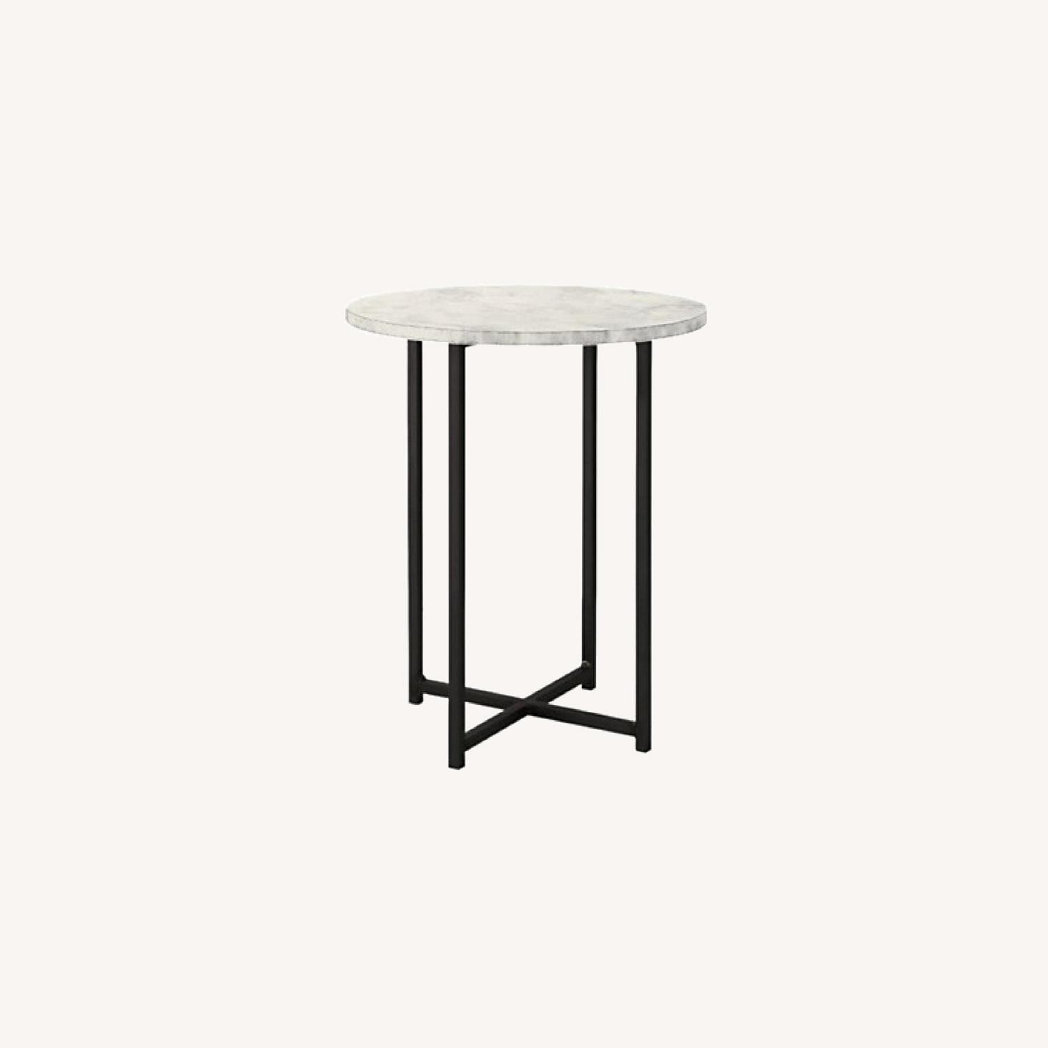 Seller's Notes:This Room & Board classic end table is striking and beautiful, sleek and charming. It has a white marble top and natural steel legs; it goes nicely with just about any style. We recently had a baby, so have had to make some changes to our home setup—it's a shame we have to part with this table, and hope it winds up somewhere great.