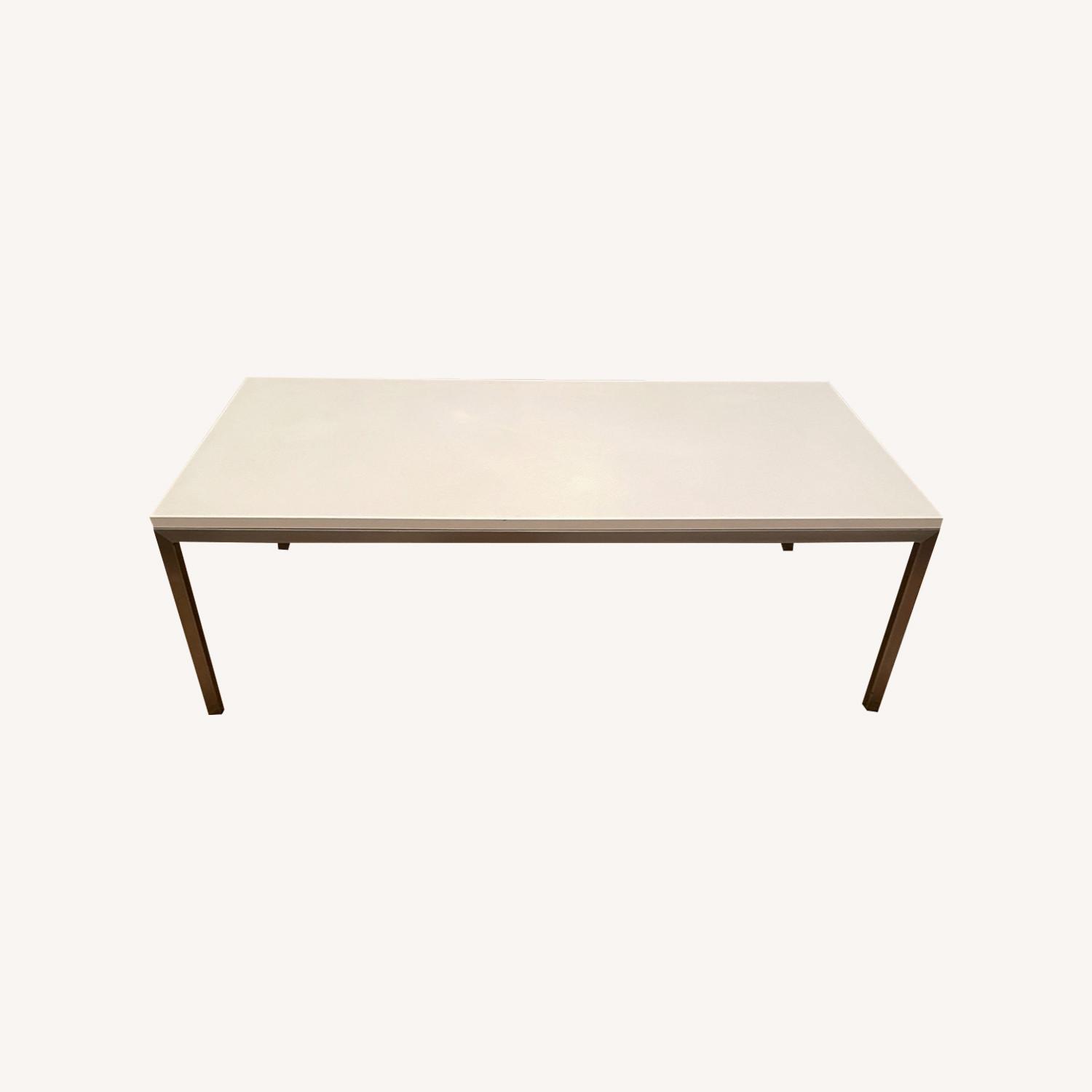 Seller's Notes:Beautiful coffee table, suits to any style, the base is stainless steel top is white MFD