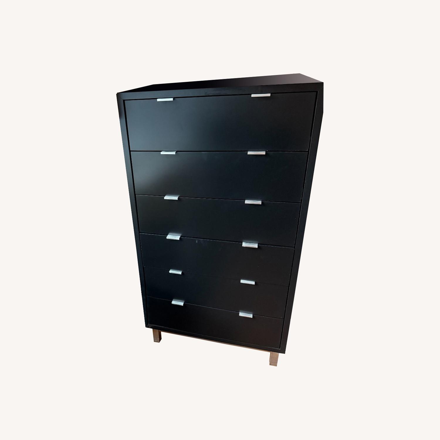 Seller's Notes:Made by North Dakota woodworkers who hand select the finest wood veneer or low-emission MDF, our Copenhagen dresser combines durable, high-quality materials with the handcrafted expertise you expect from Room & Board. With its timeless design, Copenhagen will have an enduring place in your home. Black wood with steel base. Has minor wear and tear with scratches and some chips.