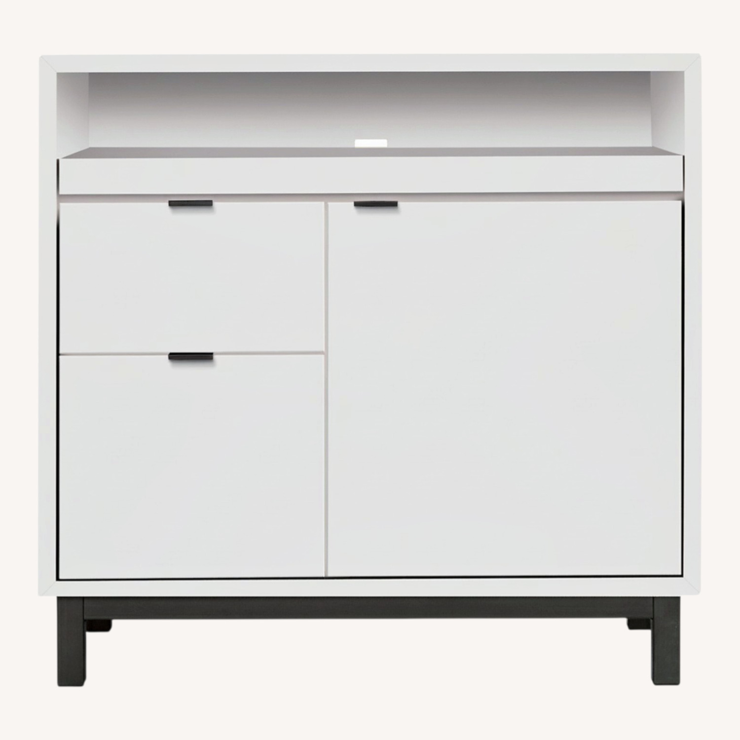 Seller's Notes:This storage desk is absolutely incredible. Not only does it allow for a comfortable work space, but it has a full filing cabinet drawer, a large storage drawer AND a two-shelf storage cabinet. It is the perfect space-saving desk! I have used it for just under 5 years so there is normal wear and tear that can easily be touched up with some paint. I am sadly moving and cannot bring this piece with me. Otherwise I would be holding onto it for a long time!
