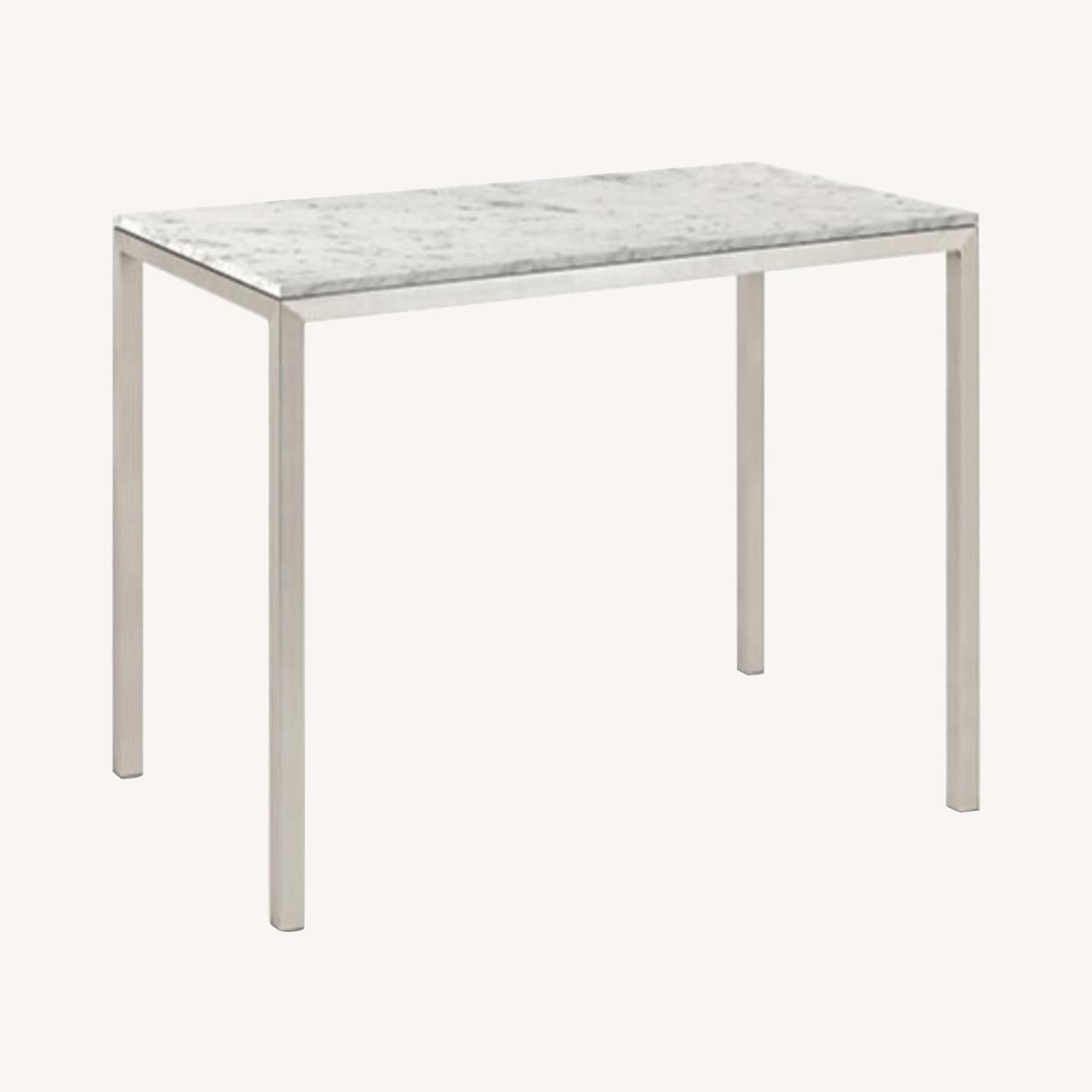 Seller's Notes:Ventino marble & stainless steel counter table from Room & Board, very good condition. Minor Blemishes. Custom-made depth: 21.1 inches (instead of 24 inches in classic version).
